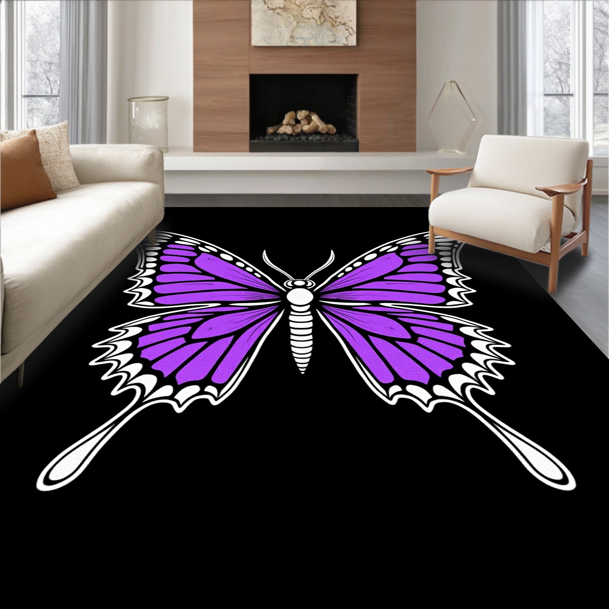 Flatwoven High Traffic Area Rug, Mystical Moth Wing with Intricate Details, Non Slip, Stain Resistant, Washable Area Rugs for Living Room, Bedroom (Purple) Overview: