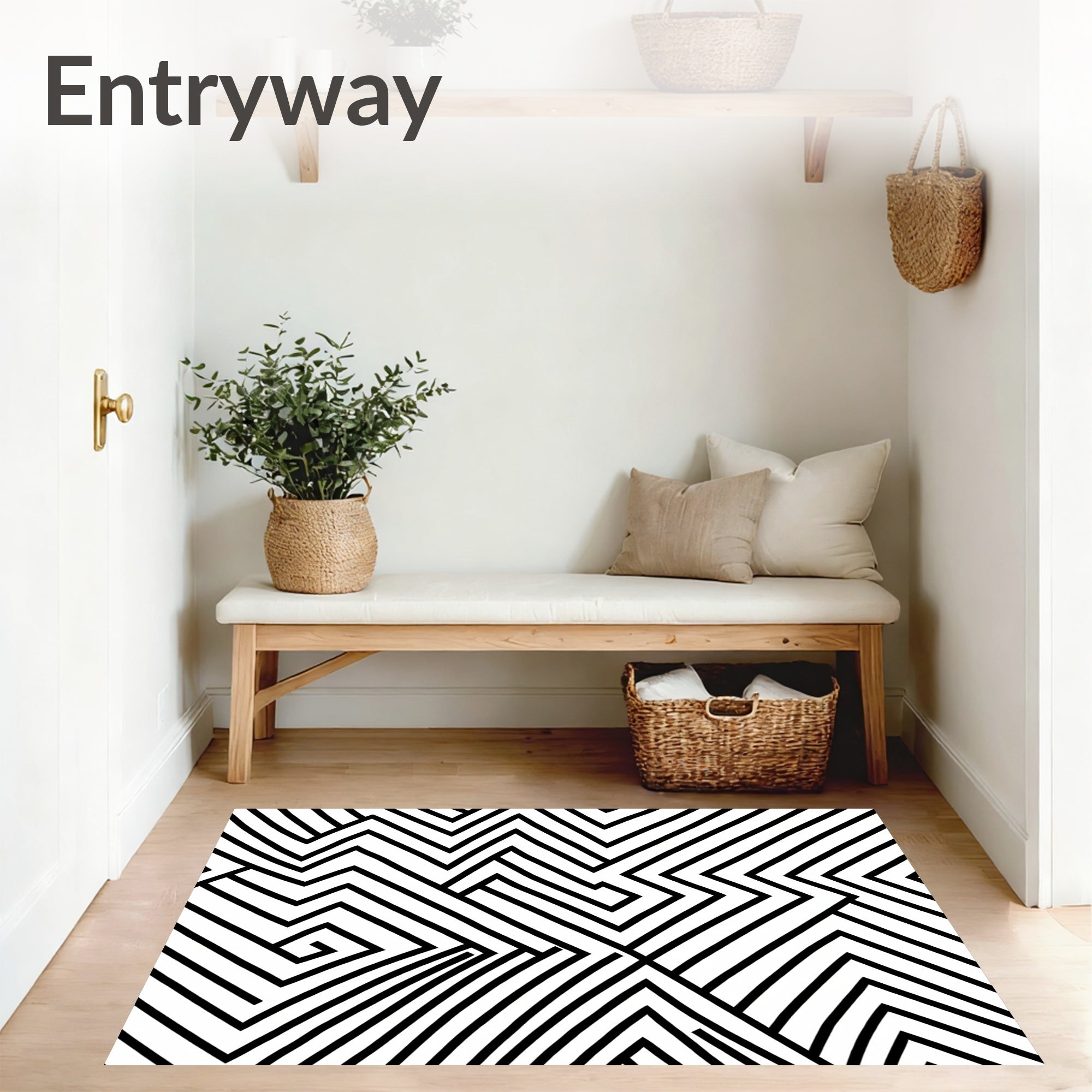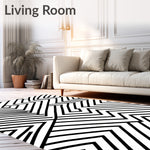 Flatwoven High Traffic Area Rug, Nordic Starburst Interlocking Design with Minimalist Stripe Detailing, Non Slip, Stain Resistant, Washable Area Rugs for Living Room, Bedroom (Black) Overview: