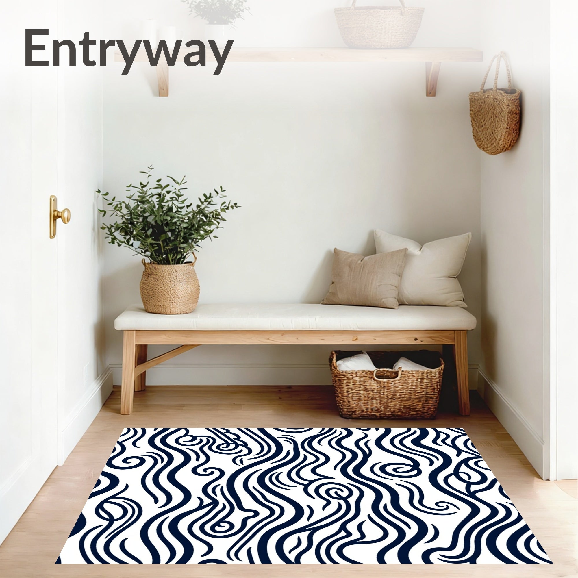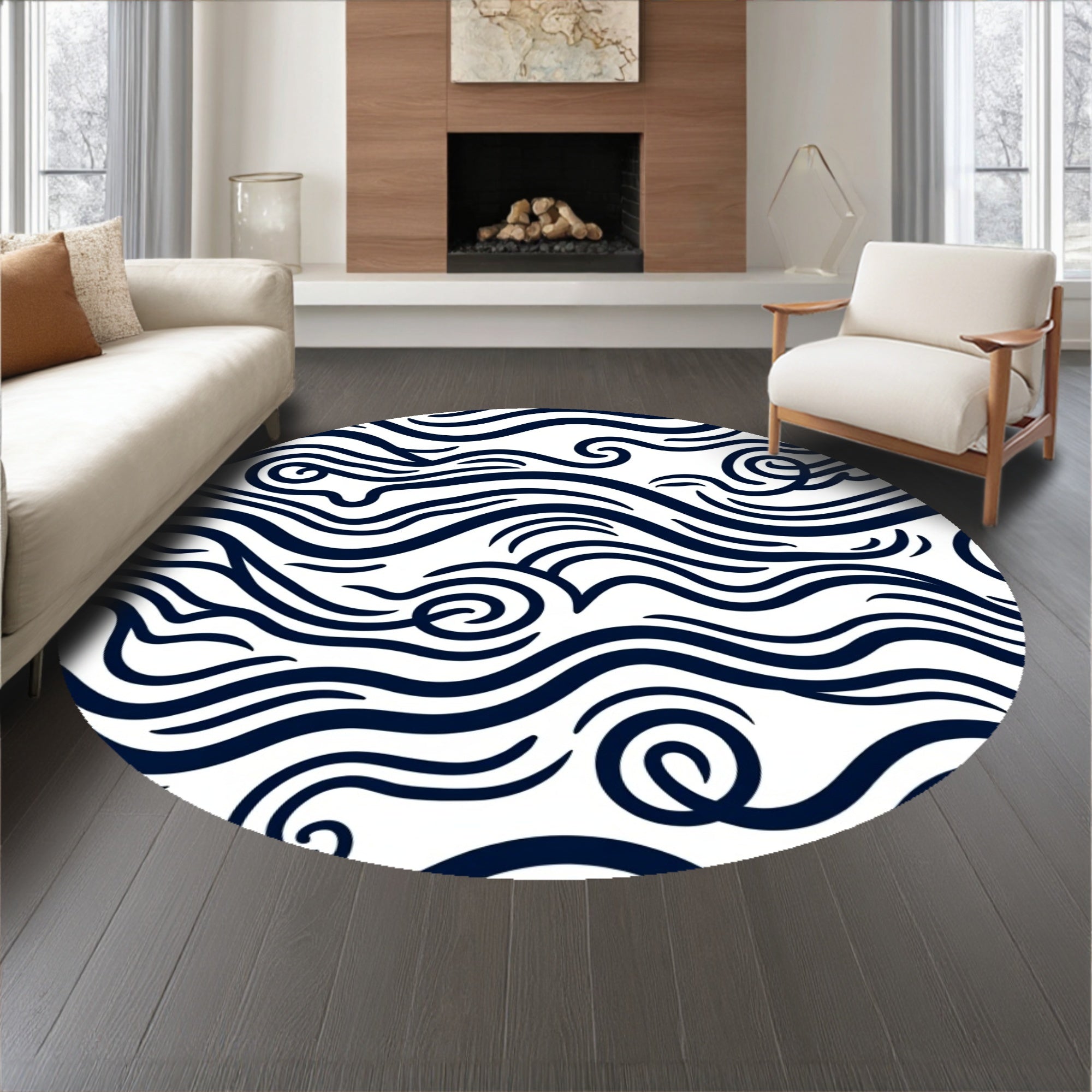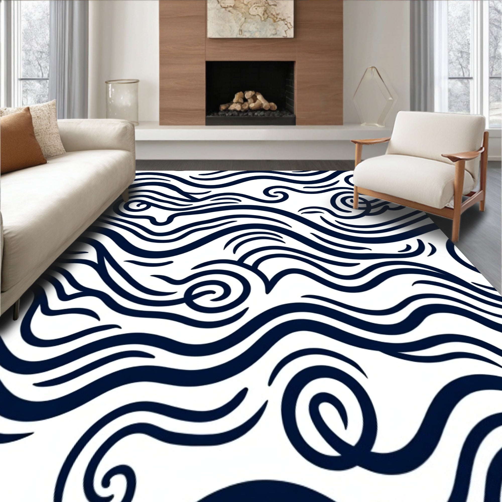 Flatwoven High Traffic Area Rug, Ocean Wave Ripple Spiral Artistic Decorative Accent, Non Slip, Stain Resistant, Washable Area Rugs for Living Room, Bedroom (Blue) Overview: