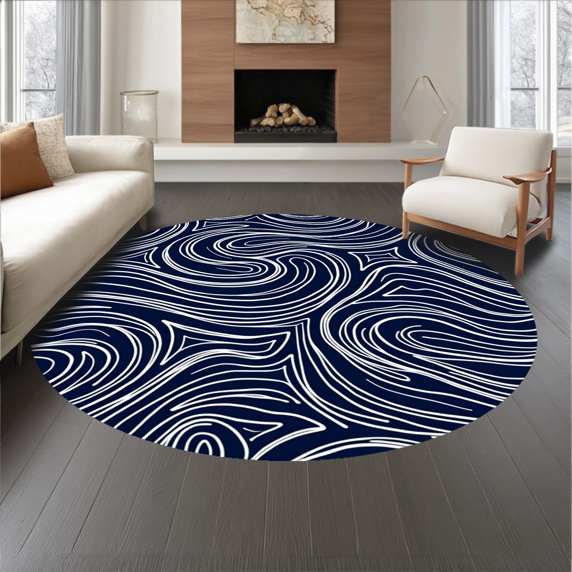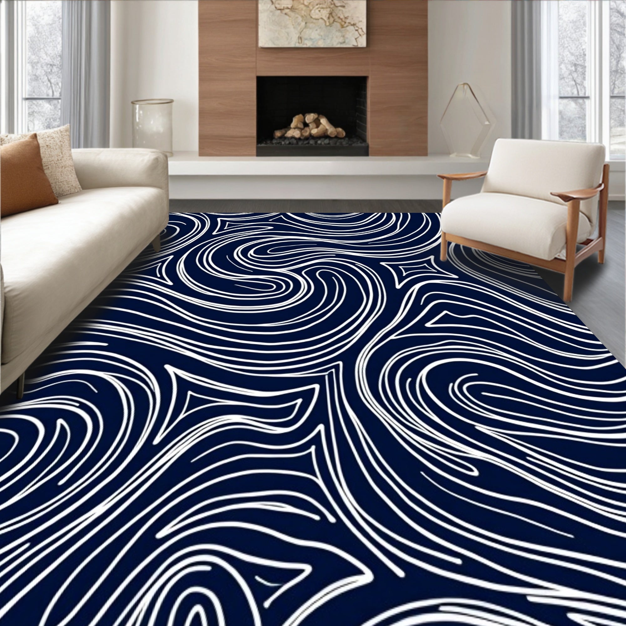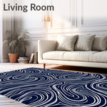 Flatwoven High Traffic Area Rug, Oceanic Wave Swirl Nautical Maritime Plush Captain Adventure, Non Slip, Stain Resistant, Washable Area Rugs for Living Room, Bedroom (Blue) Overview: