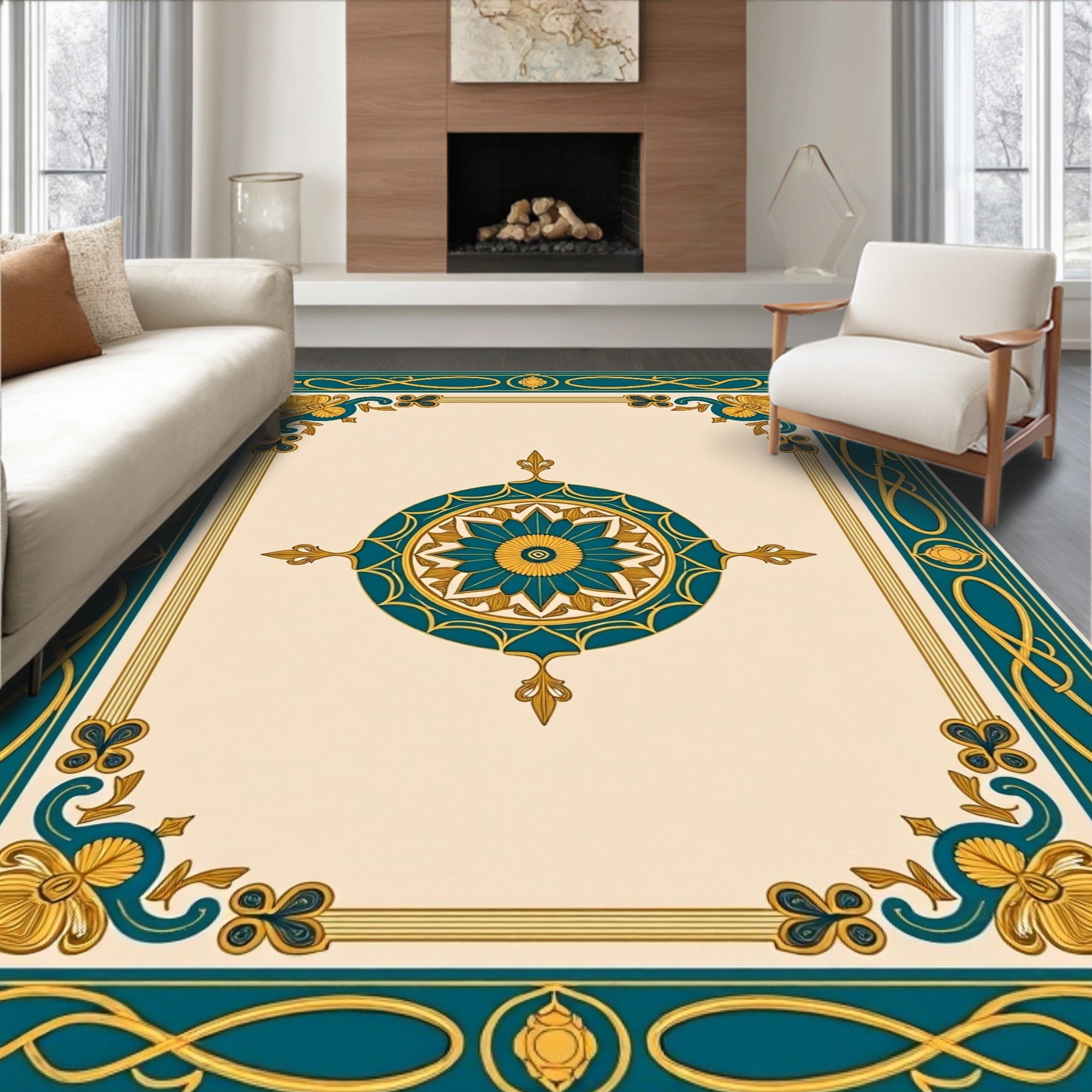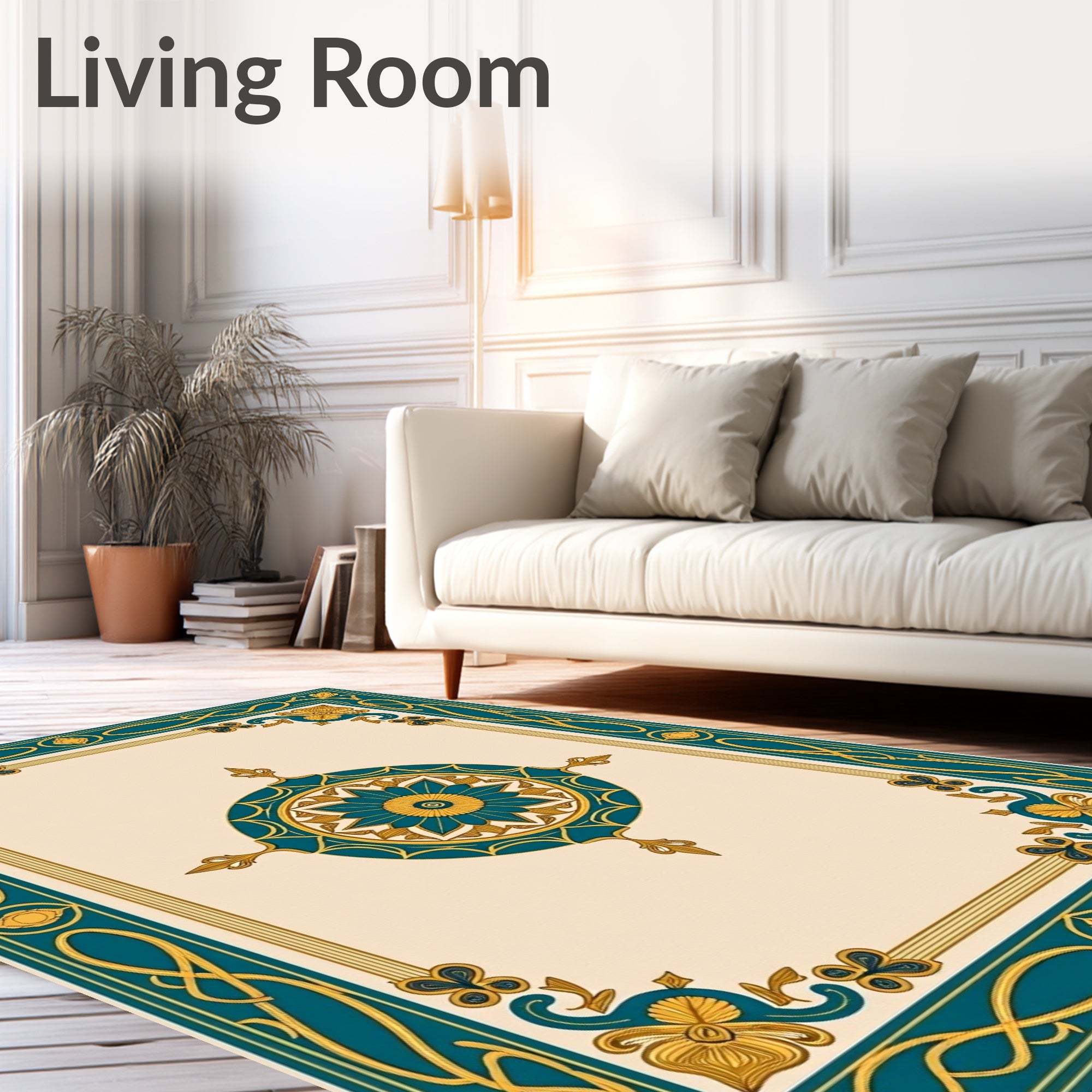Flatwoven High Traffic Area Rug, Opulent Dynasty Palatial Aristocratic Luxurious Radiant Jewel, Non Slip, Stain Resistant, Washable Area Rugs for Living Room, Bedroom (Gold) Overview: