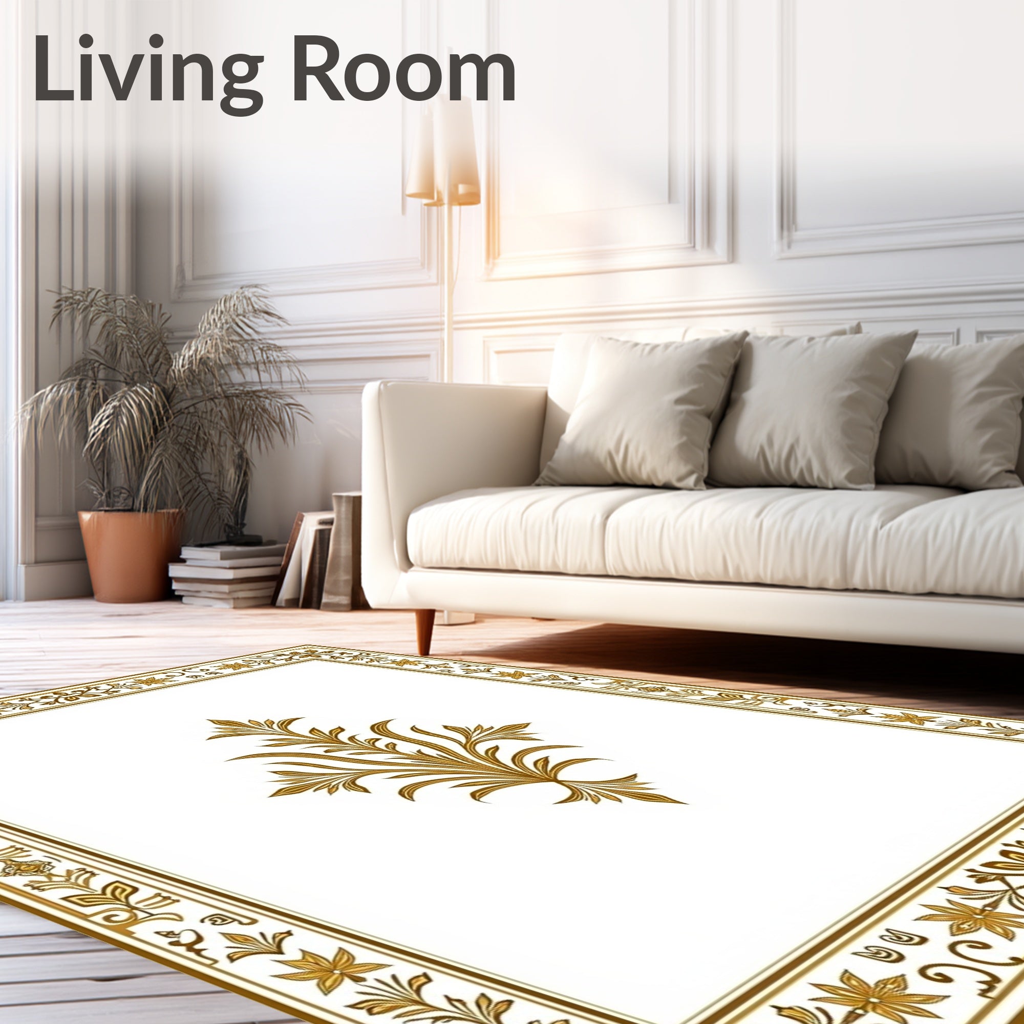Flatwoven High Traffic Area Rug, Ornamental Fleur Aristocratic Dynasty Exquisite, Non Slip, Stain Resistant, Washable Area Rugs for Living Room, Bedroom (White) Overview: