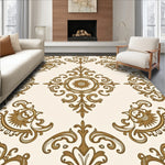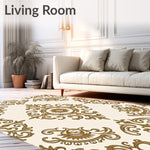 Elevate your interior with this Ornate Gold Damask Scroll Pattern Rug, a masterpiece of vintage-inspired design. Featuring intricate tan and gold acanthus motifs atop a crisp white field, this area rug bridges the gap between traditional folk heritage and modern living. Perfect for high-traffic zones like the living room or dining area, its durable construction stands up to daily life without sacrificing elegance. As a lifestyle-first brand, we ensure this piece is Machine Washable for easy maintenance and OEKO-TEX Standard 100 certified, guaranteeing it is free from harmful substances. The low-maintenance height allows it to glide under furniture effortlessly, making it a functional yet sophisticated anchor for any home.