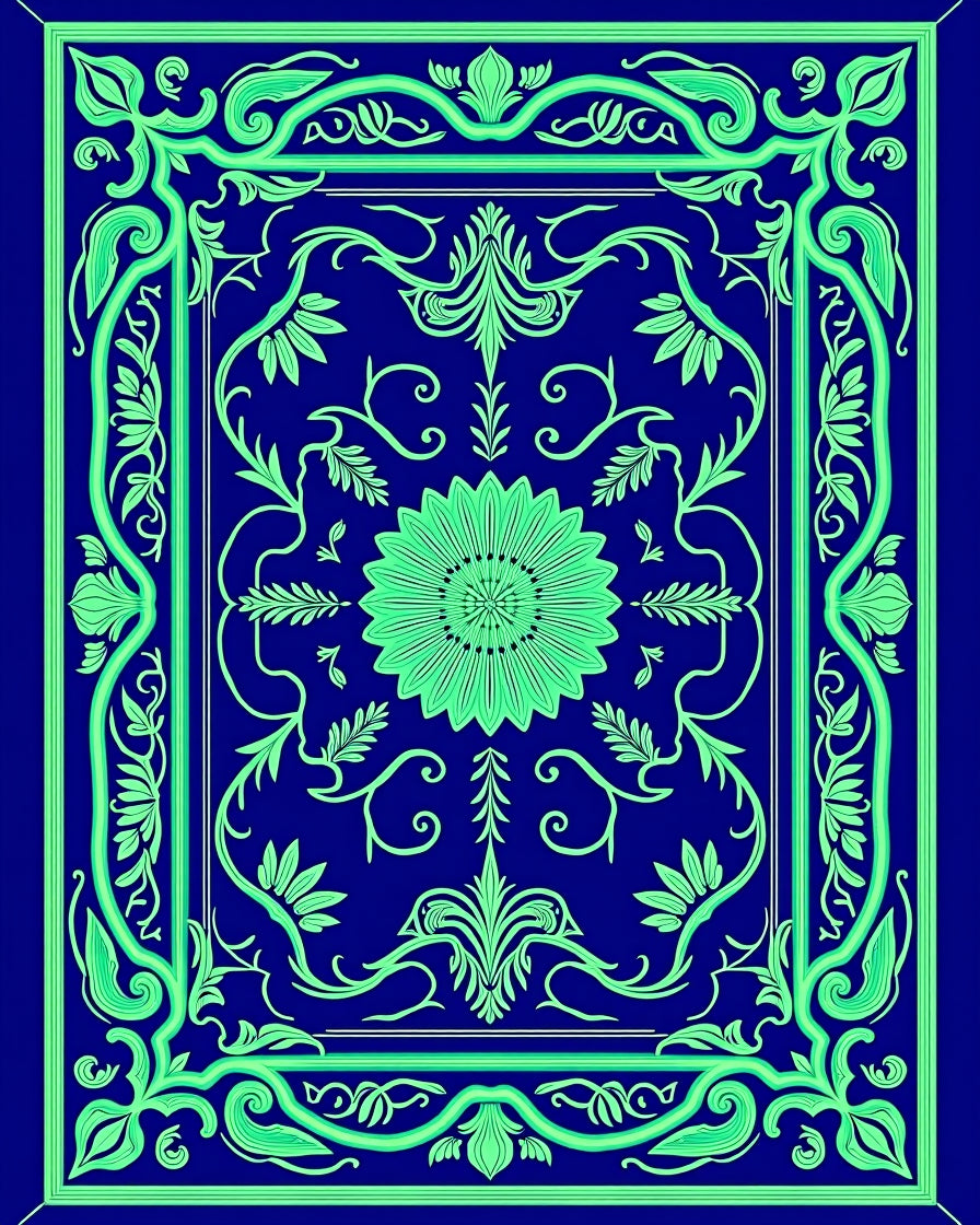 Ornate Floral Medallions Intertwined with Delicate Vines and Leaf Accents (Blue)