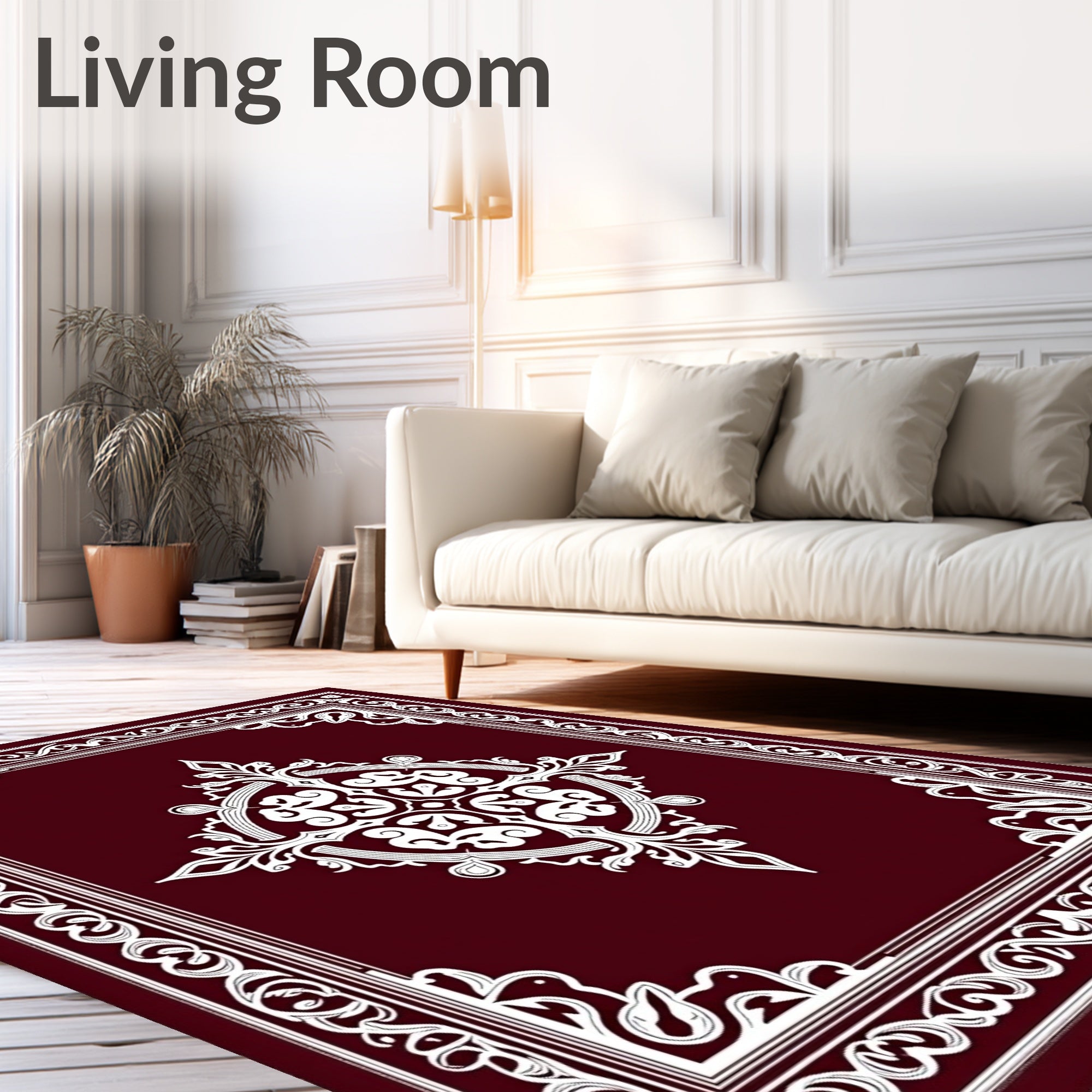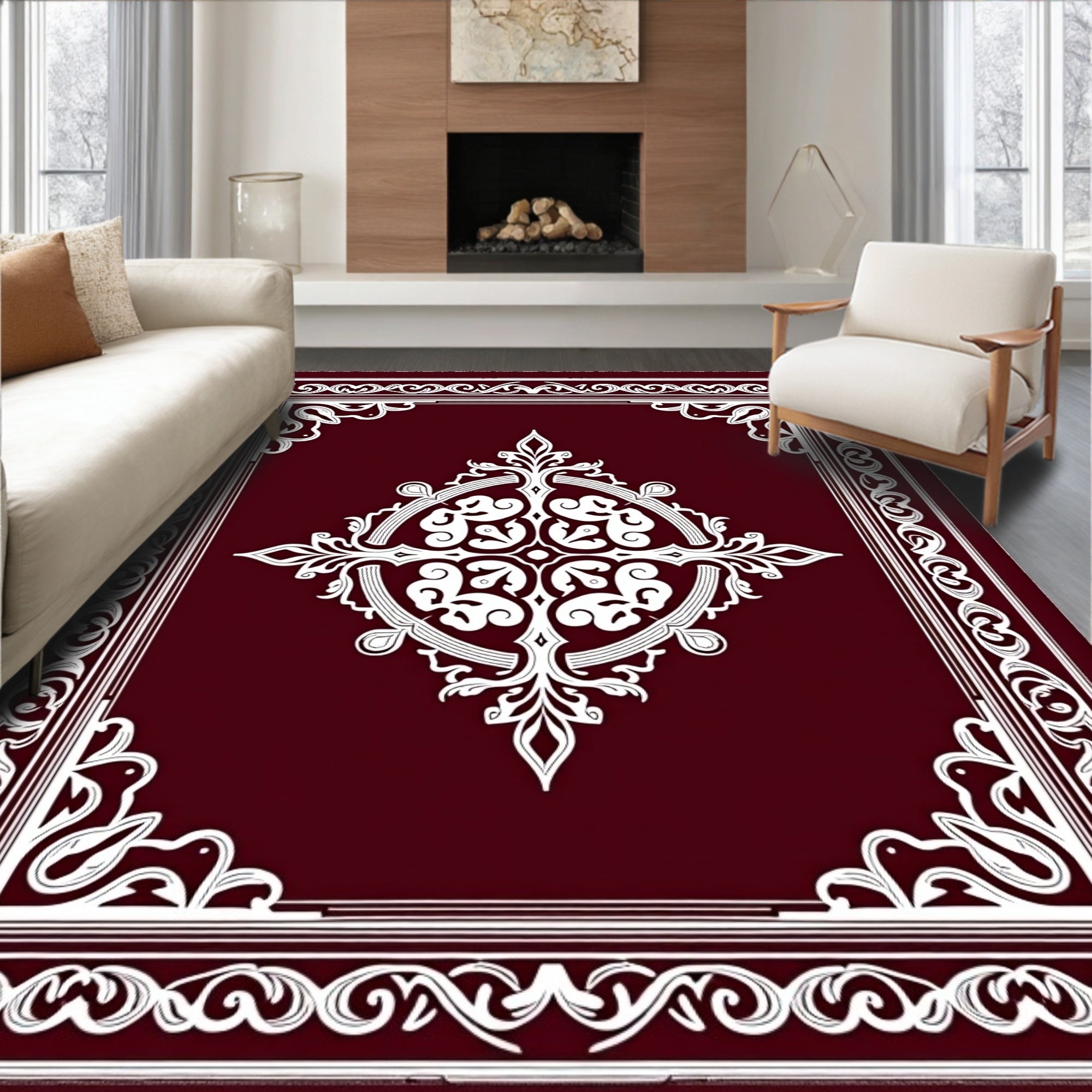 Flatwoven High Traffic Area Rug, Ornate Medallion with Filigree Swirls Contemporary Luxe Inspiration, Non Slip, Stain Resistant, Washable Area Rugs for Living Room, Bedroom (Red) Overview: