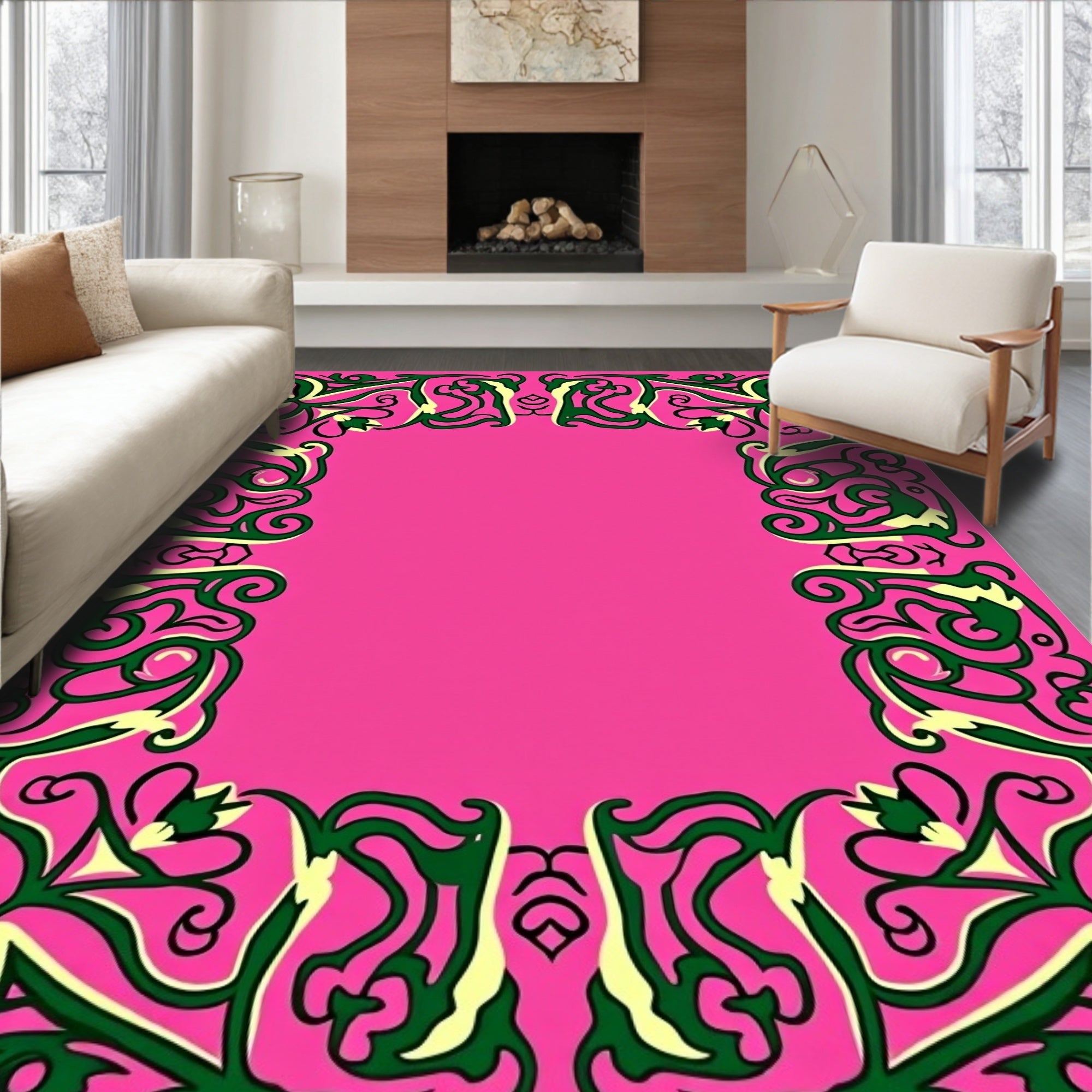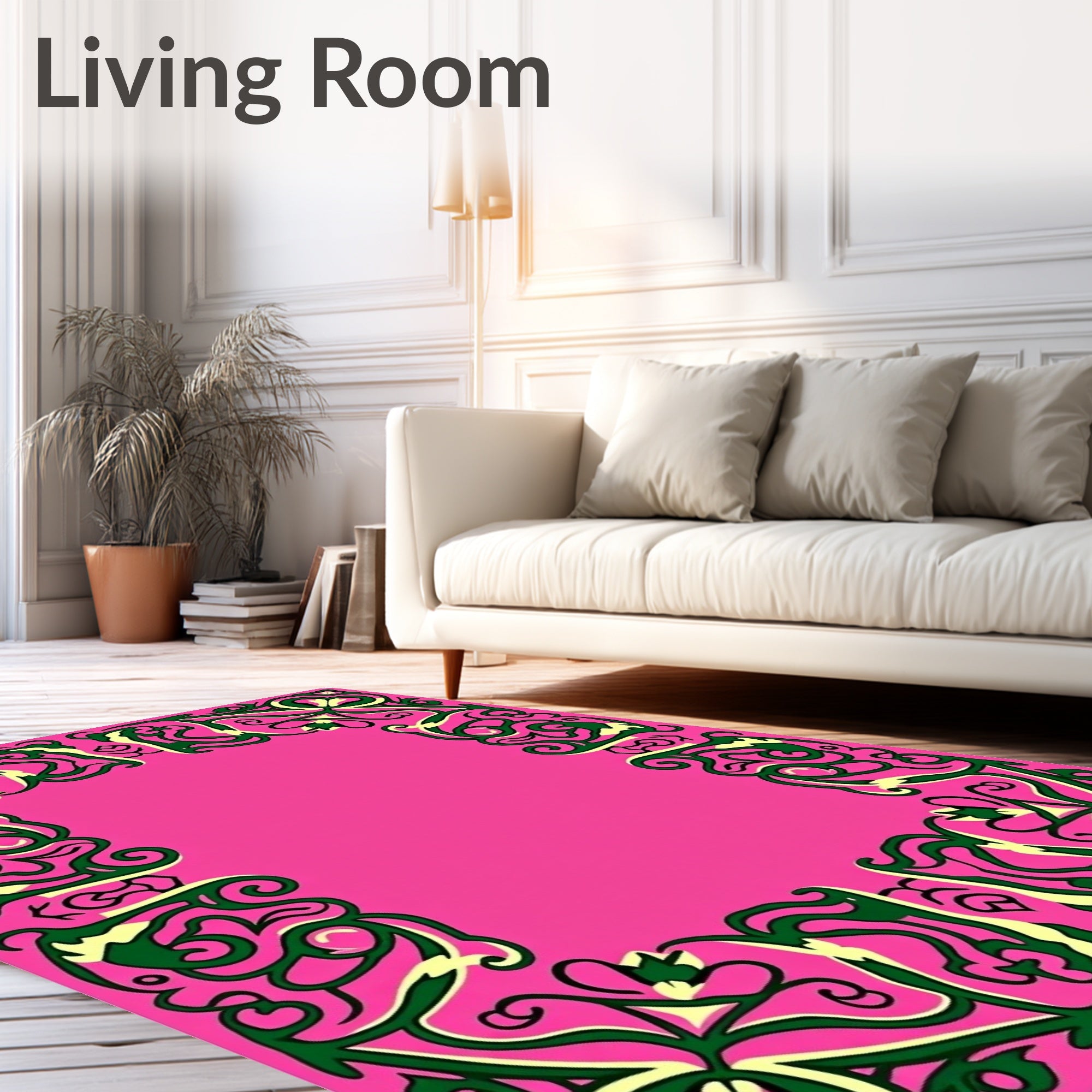 Flatwoven High Traffic Area Rug, Ornate Petal Scrollwork Enhanced by Interlocking Vine, Non Slip, Stain Resistant, Washable Area Rugs for Living Room, Bedroom (Pink) Overview:
