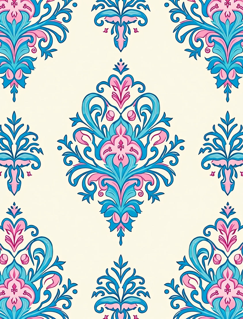 Paisley Damask Heritage Scrollwork Botanical Motif (Blue)