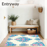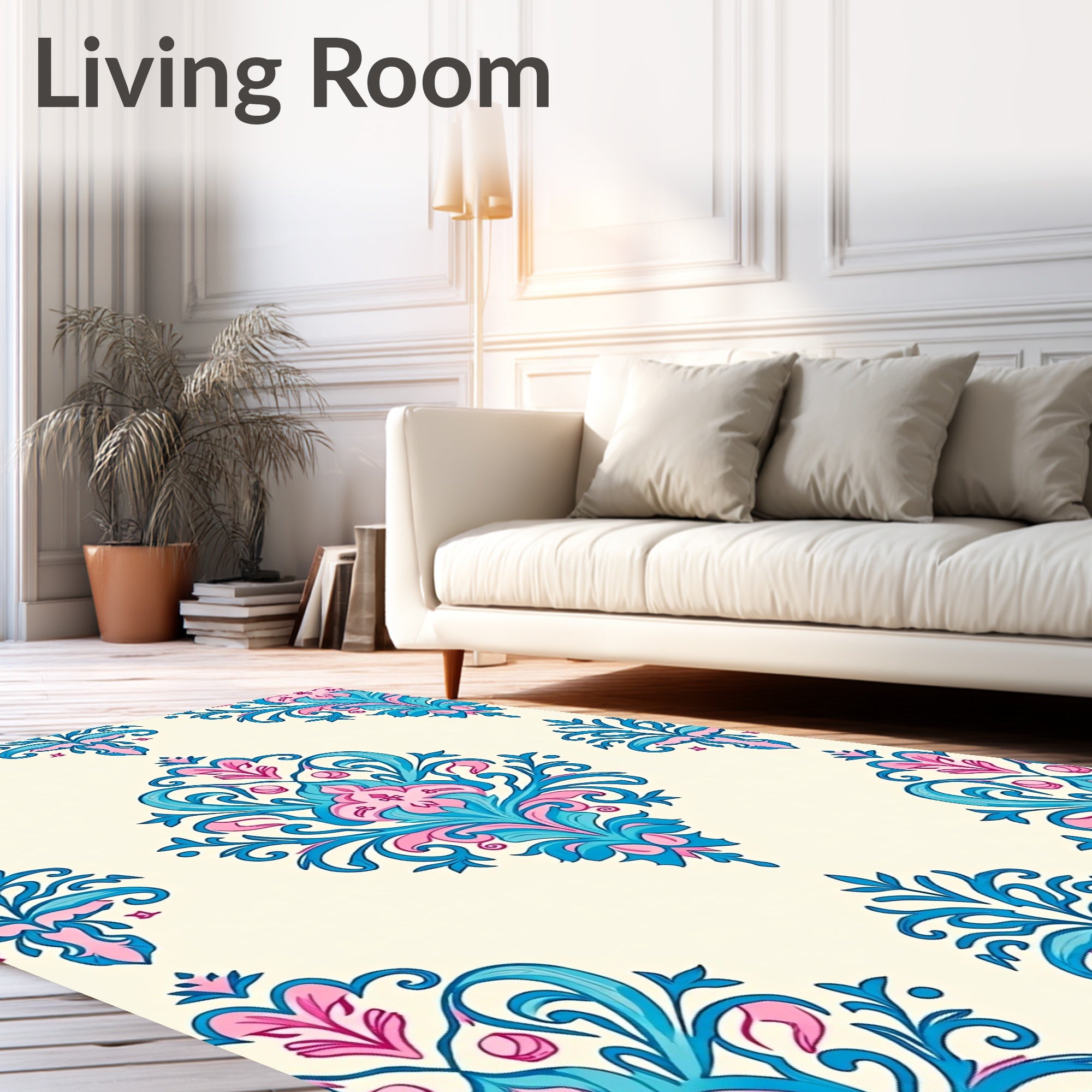 Flatwoven High Traffic Area Rug, Paisley Damask Heritage Scrollwork Botanical Motif, Non Slip, Stain Resistant, Washable Area Rugs for Living Room, Bedroom (Blue) Overview: