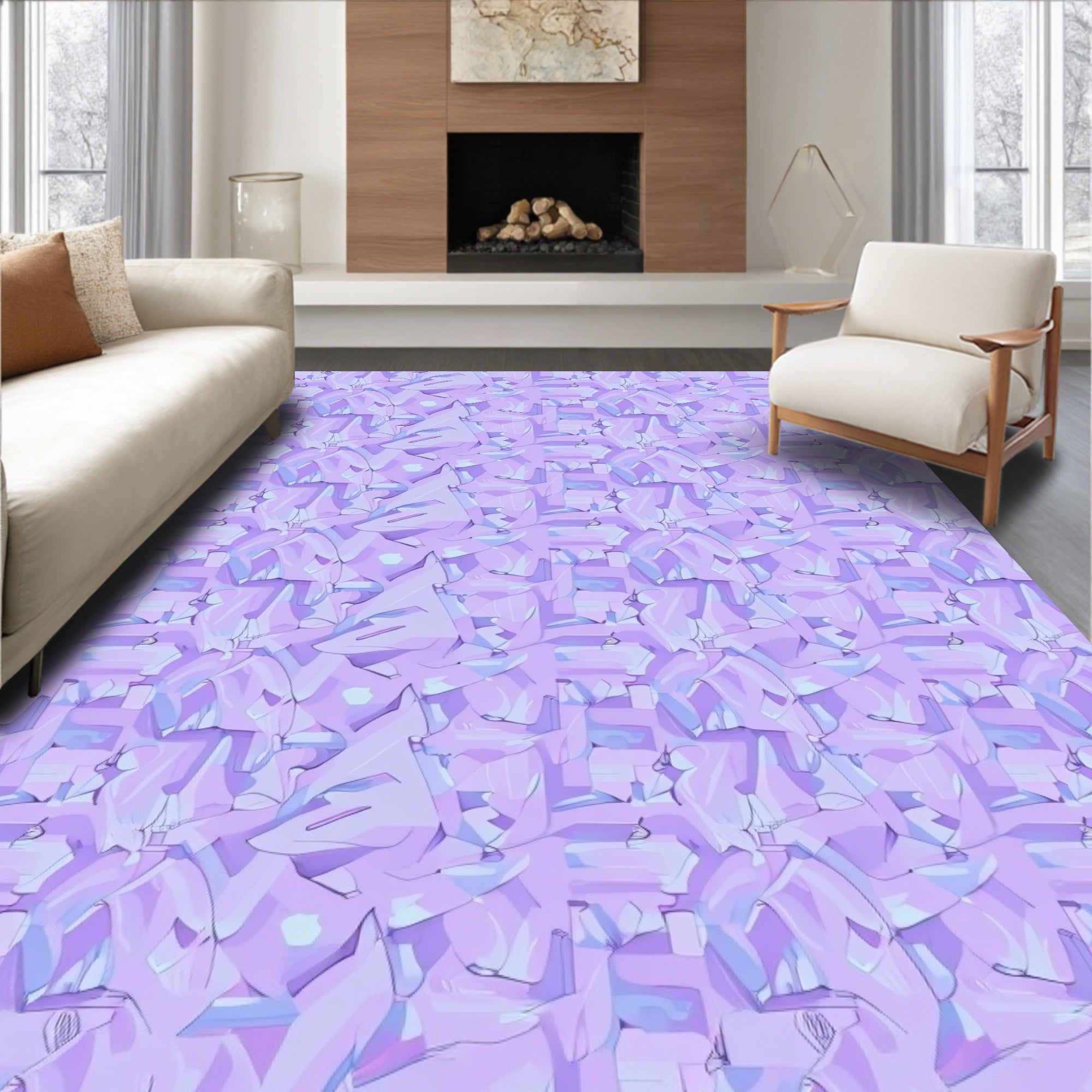 Flatwoven High Traffic Area Rug, Pastel Purple Mosaic with Intricate Interlocking Tessellated, Non Slip, Stain Resistant, Washable Area Rugs for Living Room, Bedroom (Purple) Overview: