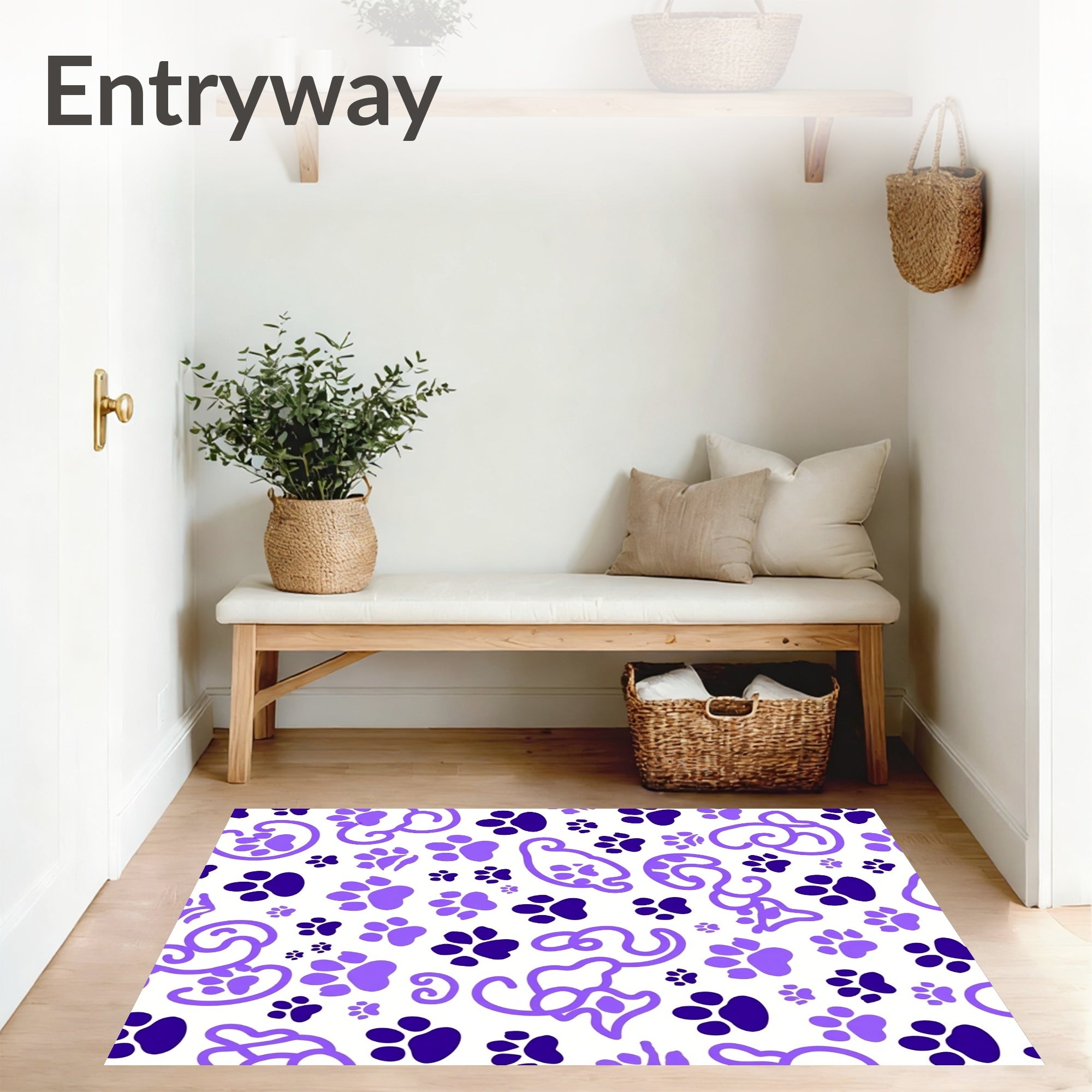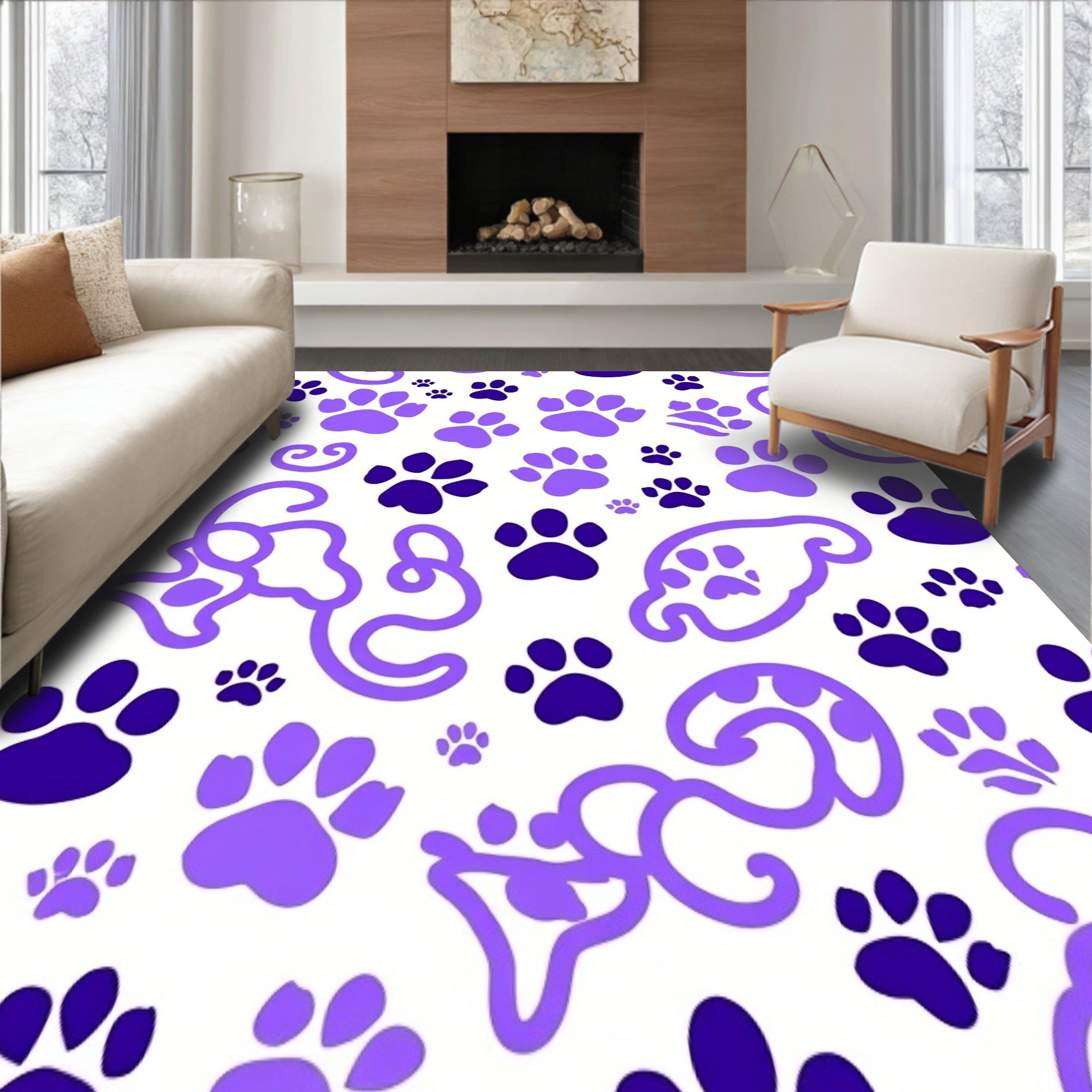 Flatwoven High Traffic Area Rug, Paw Print Swirl Decorative Accent Adorable Puppy Motif, Non Slip, Stain Resistant, Washable Area Rugs for Living Room, Bedroom (Purple) Overview: