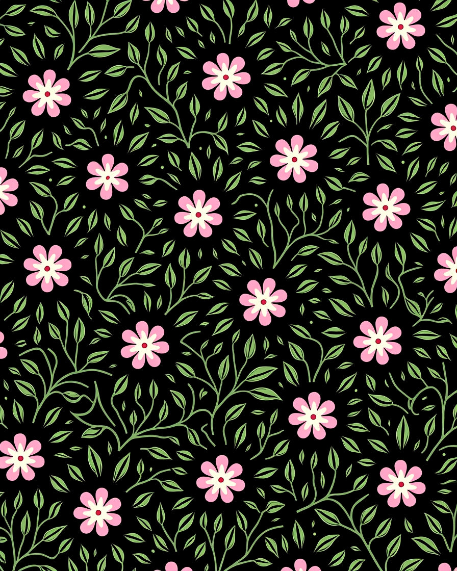 Petal Cascade Showcasing Boho Florals and Flowing Vine (Black)