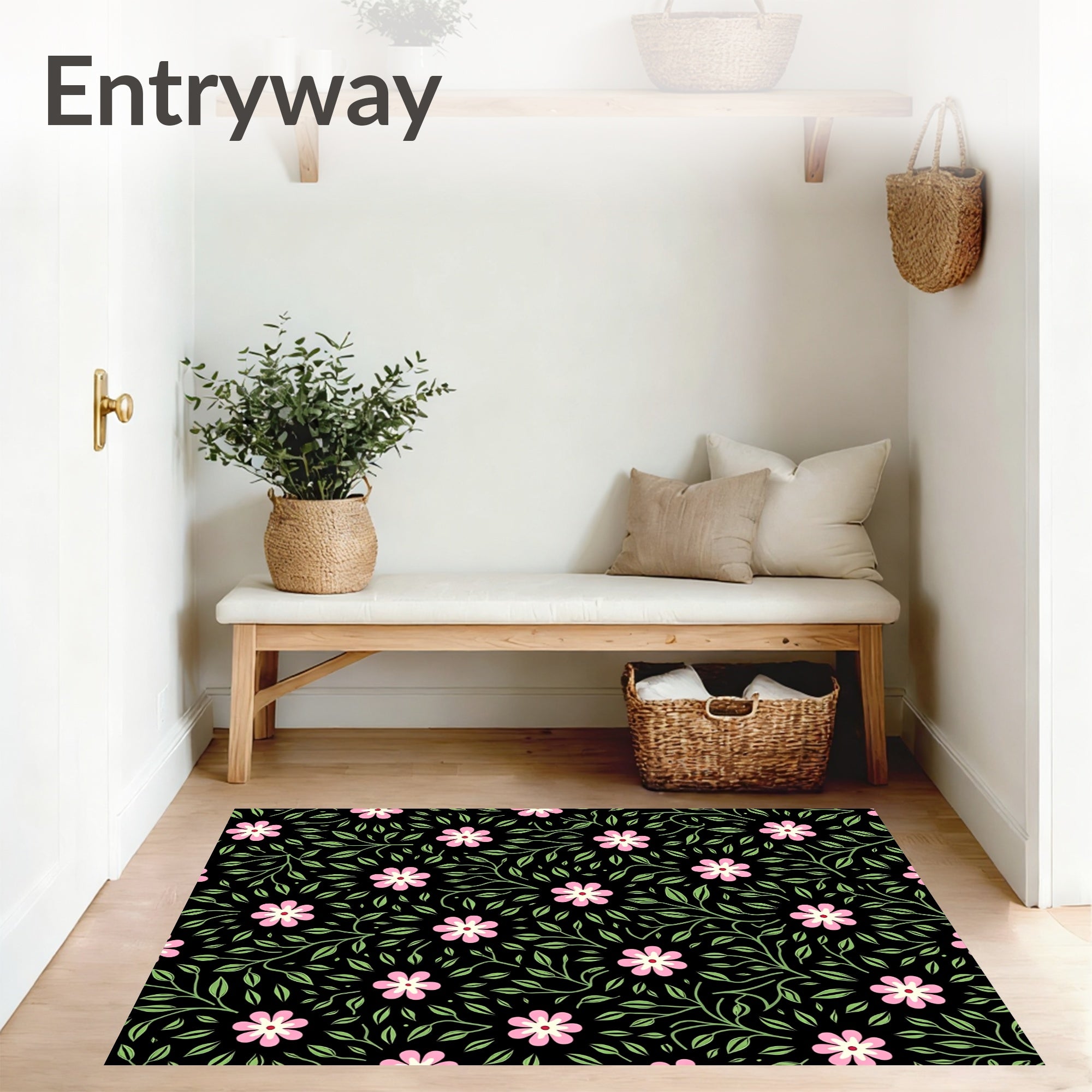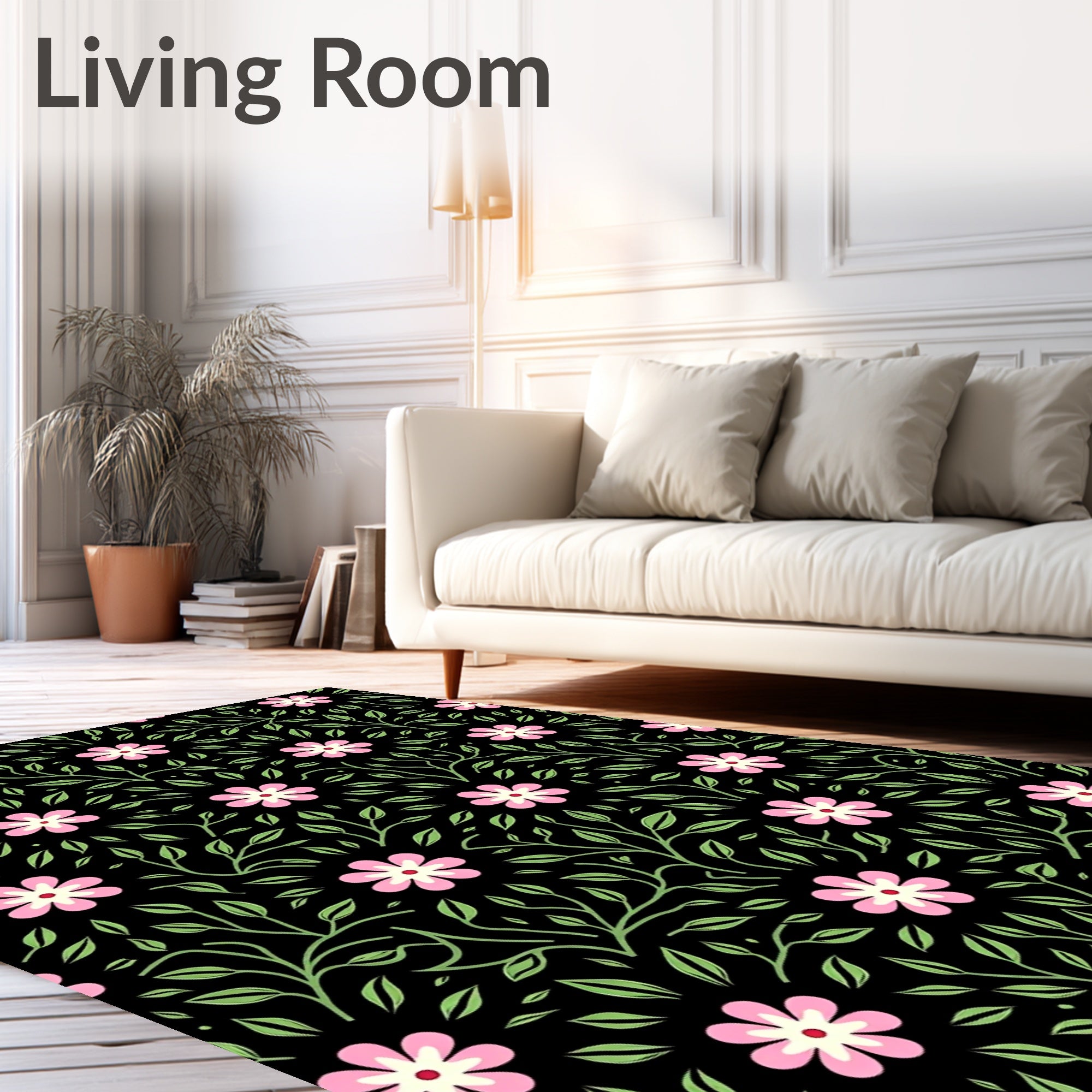 Flatwoven High Traffic Area Rug, Petal Cascade Showcasing Boho Florals and Flowing Vine, Non Slip, Stain Resistant, Washable Area Rugs for Living Room, Bedroom (Black) Overview: