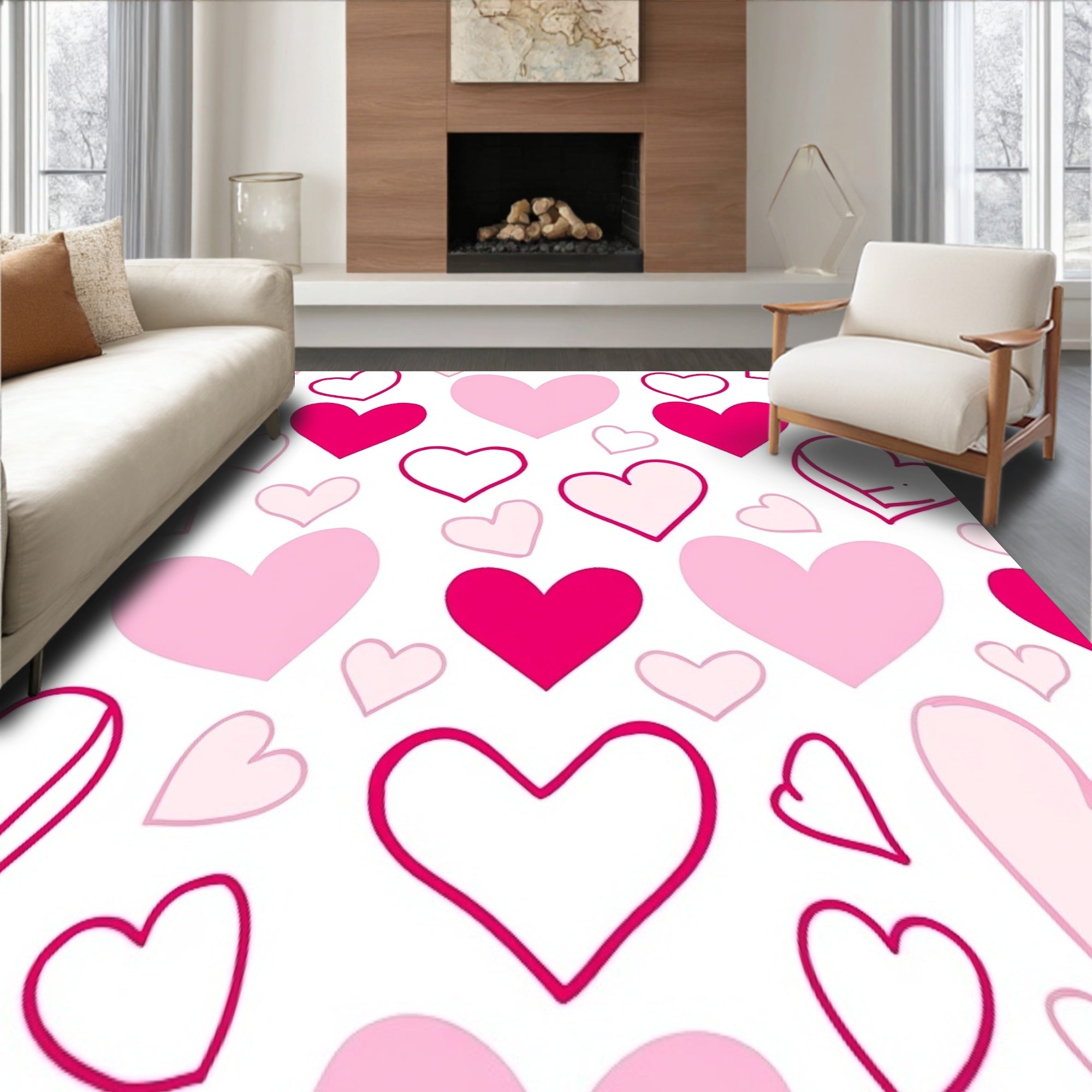 Flatwoven High Traffic Area Rug, Pink Interlocking Hearts, Non Slip, Stain Resistant, Washable Area Rugs for Living Room, Bedroom (Pink) Overview: