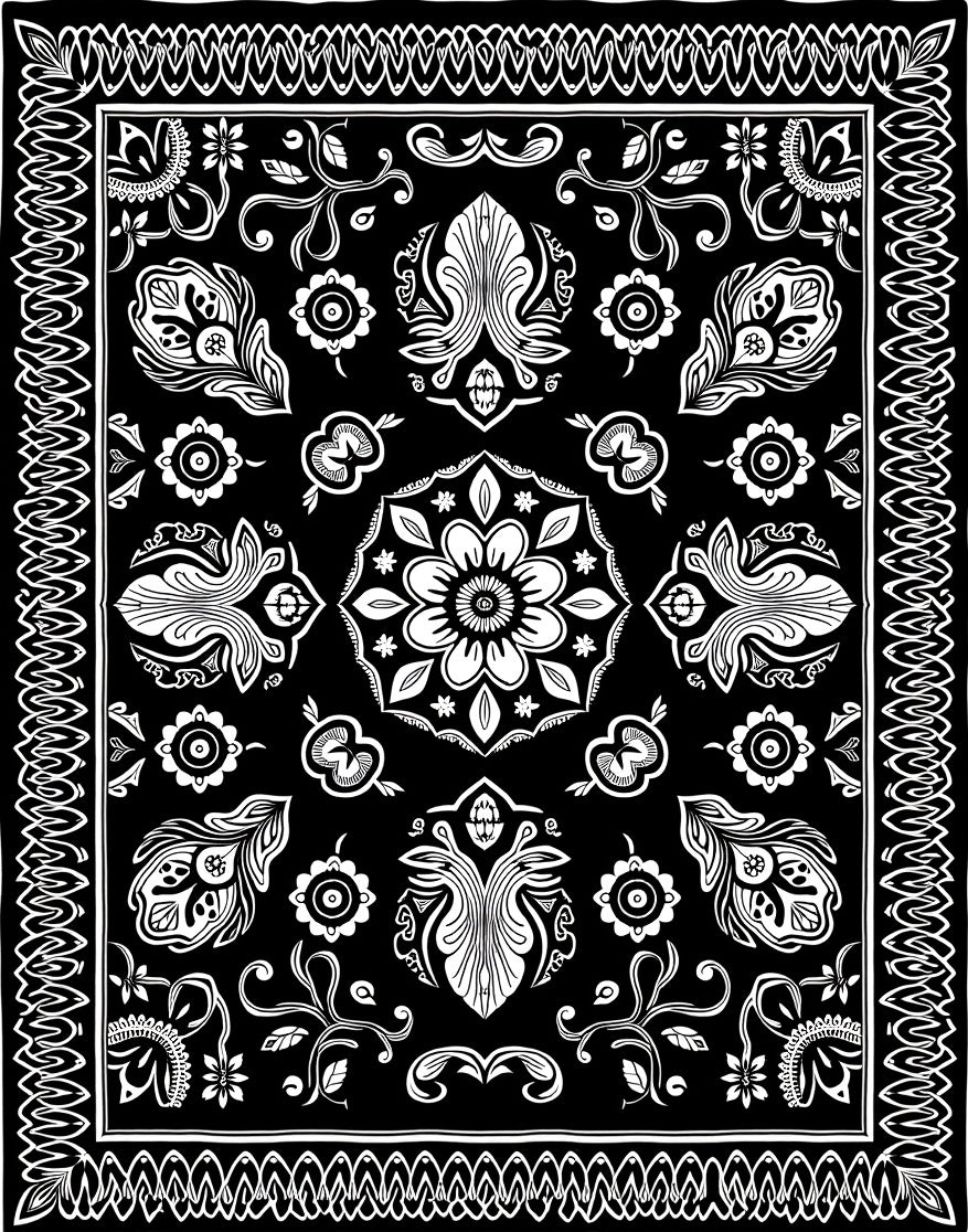 Plush Medallion Design Textile (Black)