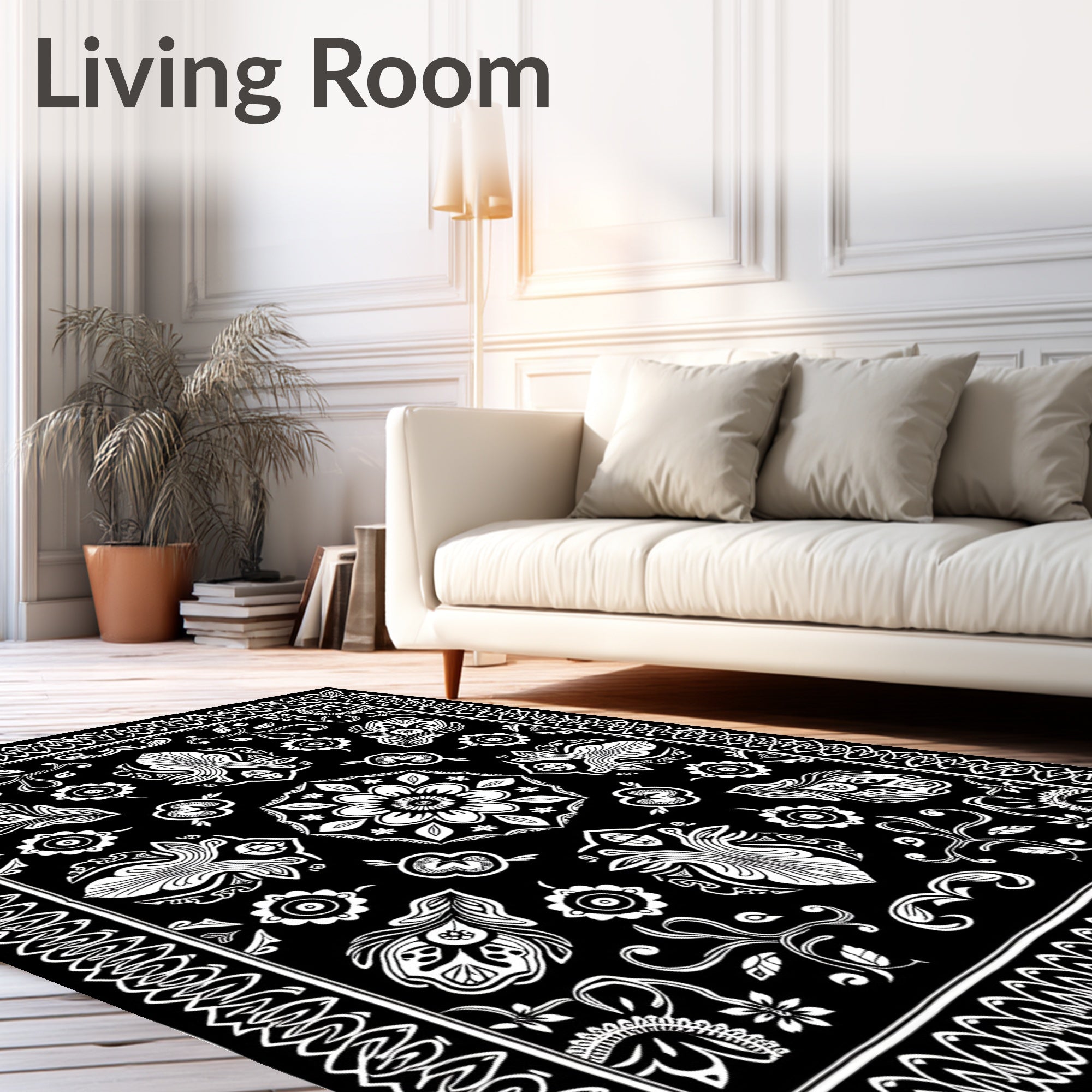 Flatwoven High Traffic Area Rug, Plush Medallion Design Textile, Non Slip, Stain Resistant, Washable Area Rugs for Living Room, Bedroom (Black) Overview: