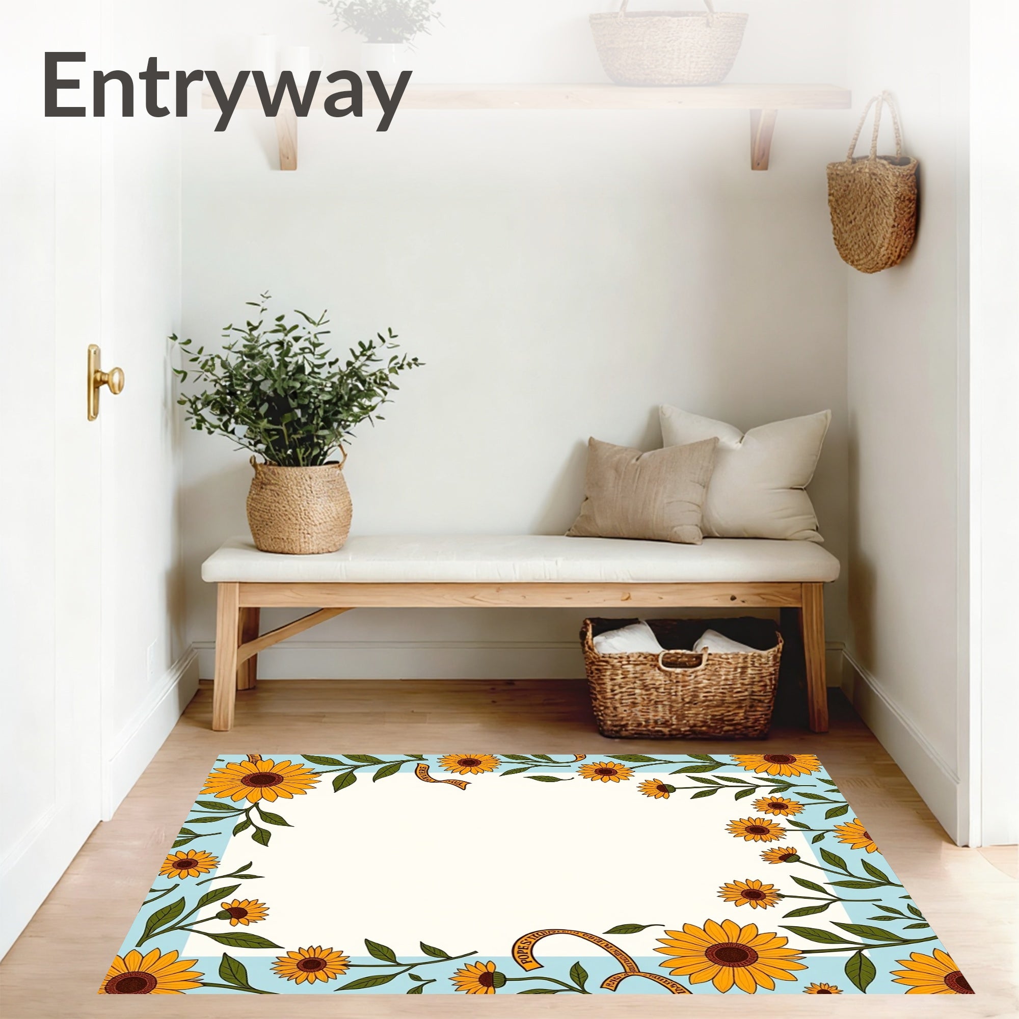 Flatwoven High Traffic Area Rug, Prairie Wildflower Inspirational Verse Nature Tapestry, Non Slip, Stain Resistant, Washable Area Rugs for Living Room, Bedroom (Yellow) Overview: