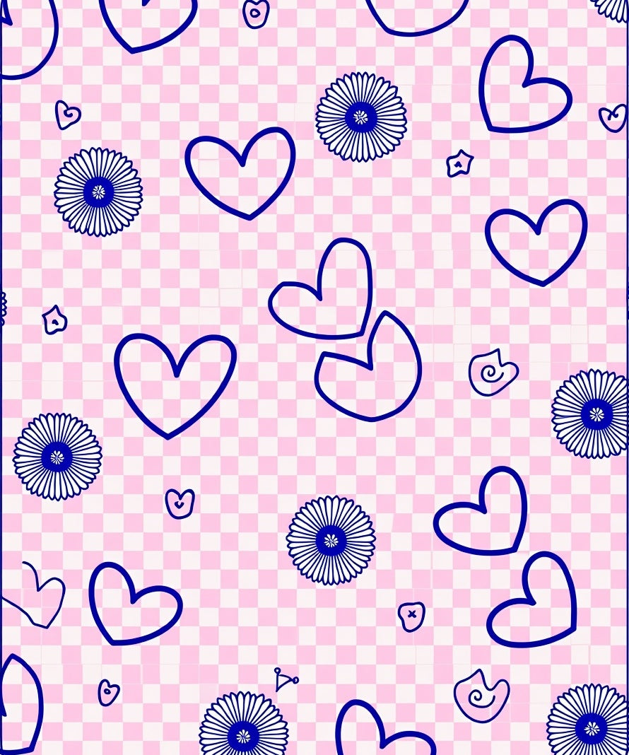 Preppy Checkered Design with Playful Daisies and Contrasting Outlines (Pink)