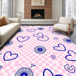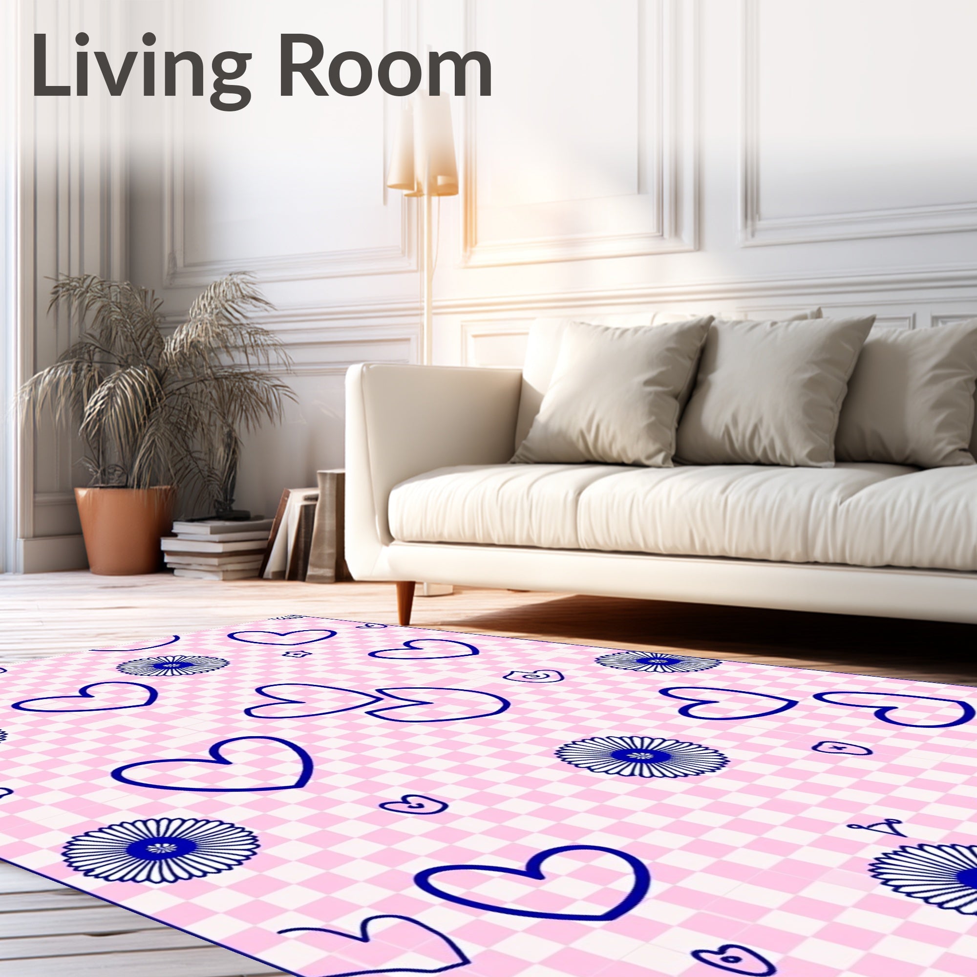 Flatwoven High Traffic Area Rug, Preppy Checkered Design with Playful Daisies and Contrasting Outlines, Non Slip, Stain Resistant, Washable Area Rugs for Living Room, Bedroom (Pink) Overview: