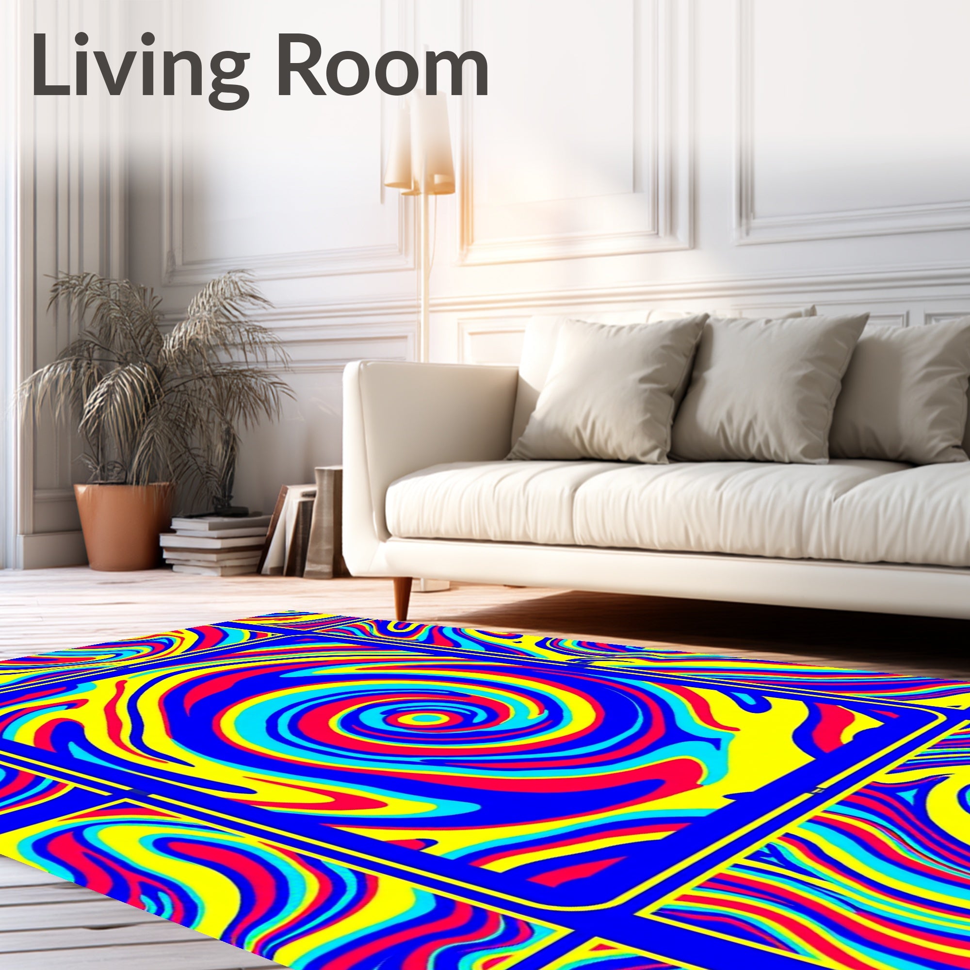 Flatwoven High Traffic Area Rug, Prismatic Kaleidoscope Swirl Dynamic, Non Slip, Stain Resistant, Washable Area Rugs for Living Room, Bedroom (Blue) Overview: