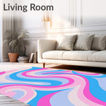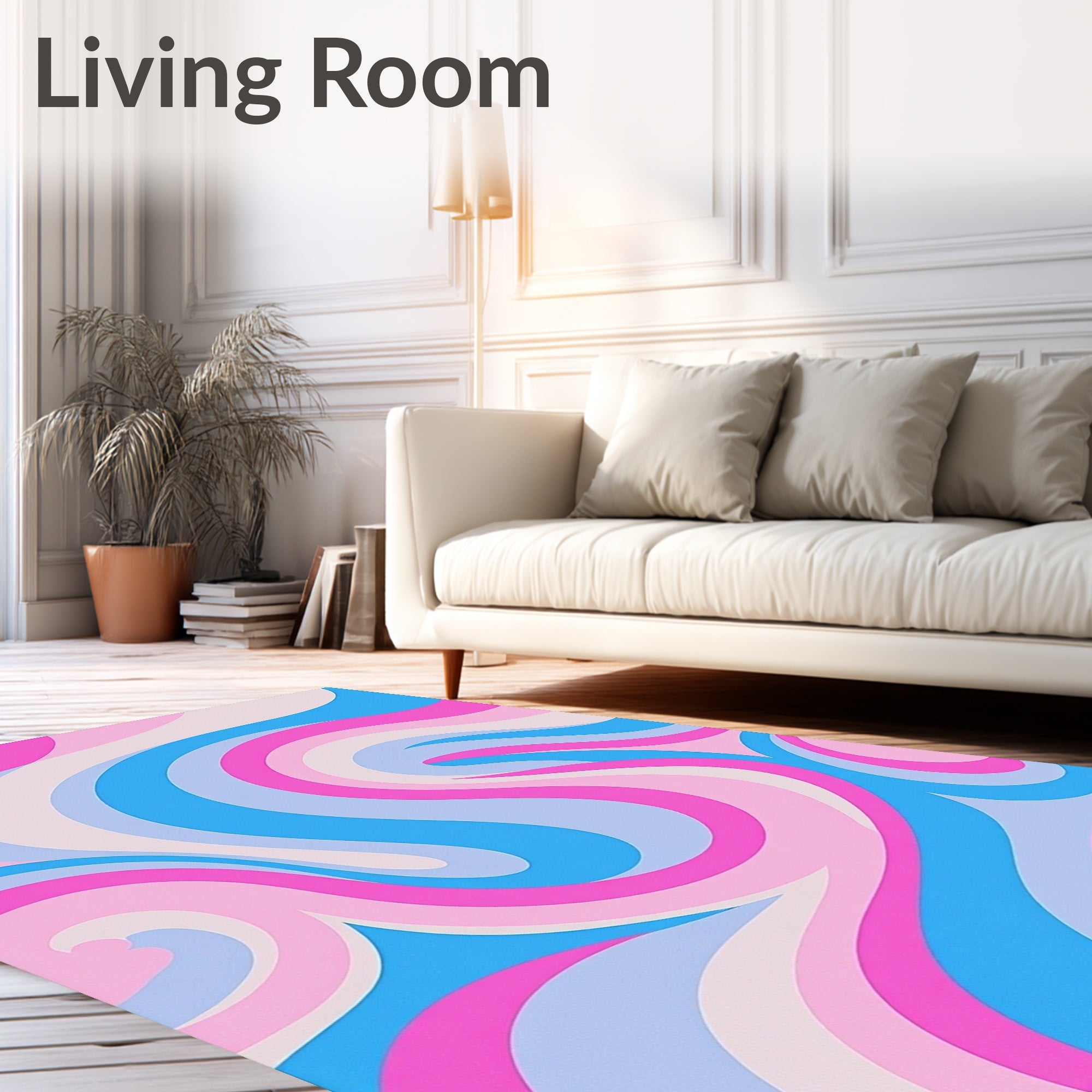 Flatwoven High Traffic Area Rug, Prismatic Ribbon Swirls with Harmonious Layered Color Transitions, Non Slip, Stain Resistant, Washable Area Rugs for Living Room, Bedroom (Pink) Overview: