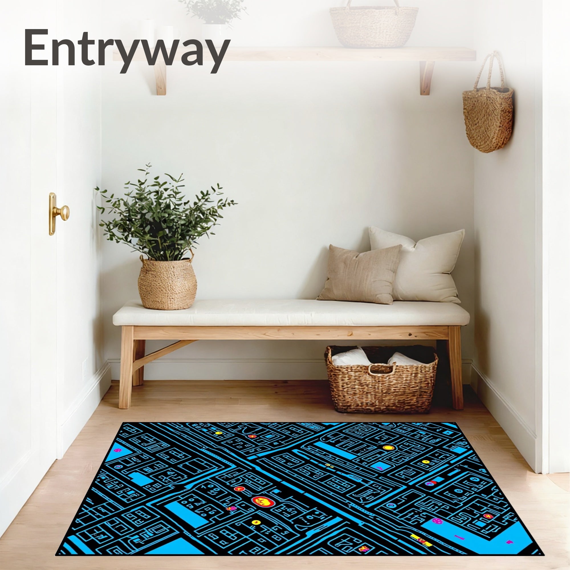 Flatwoven High Traffic Area Rug, Rescue Team City Streets Navigation Layout, Non Slip, Stain Resistant, Washable Area Rugs for Living Room, Bedroom (Blue) Overview: