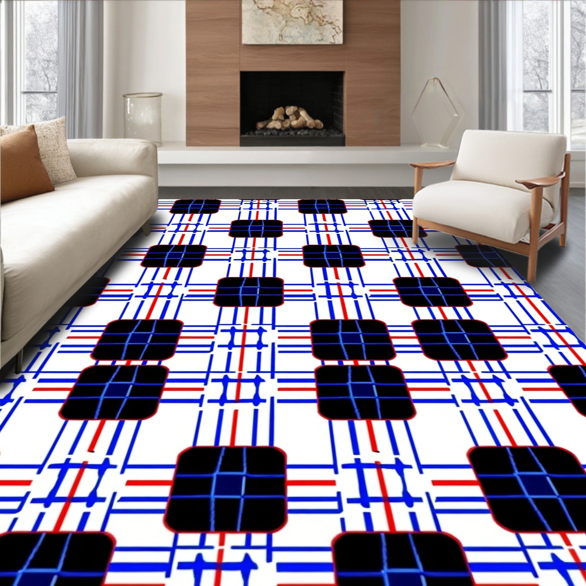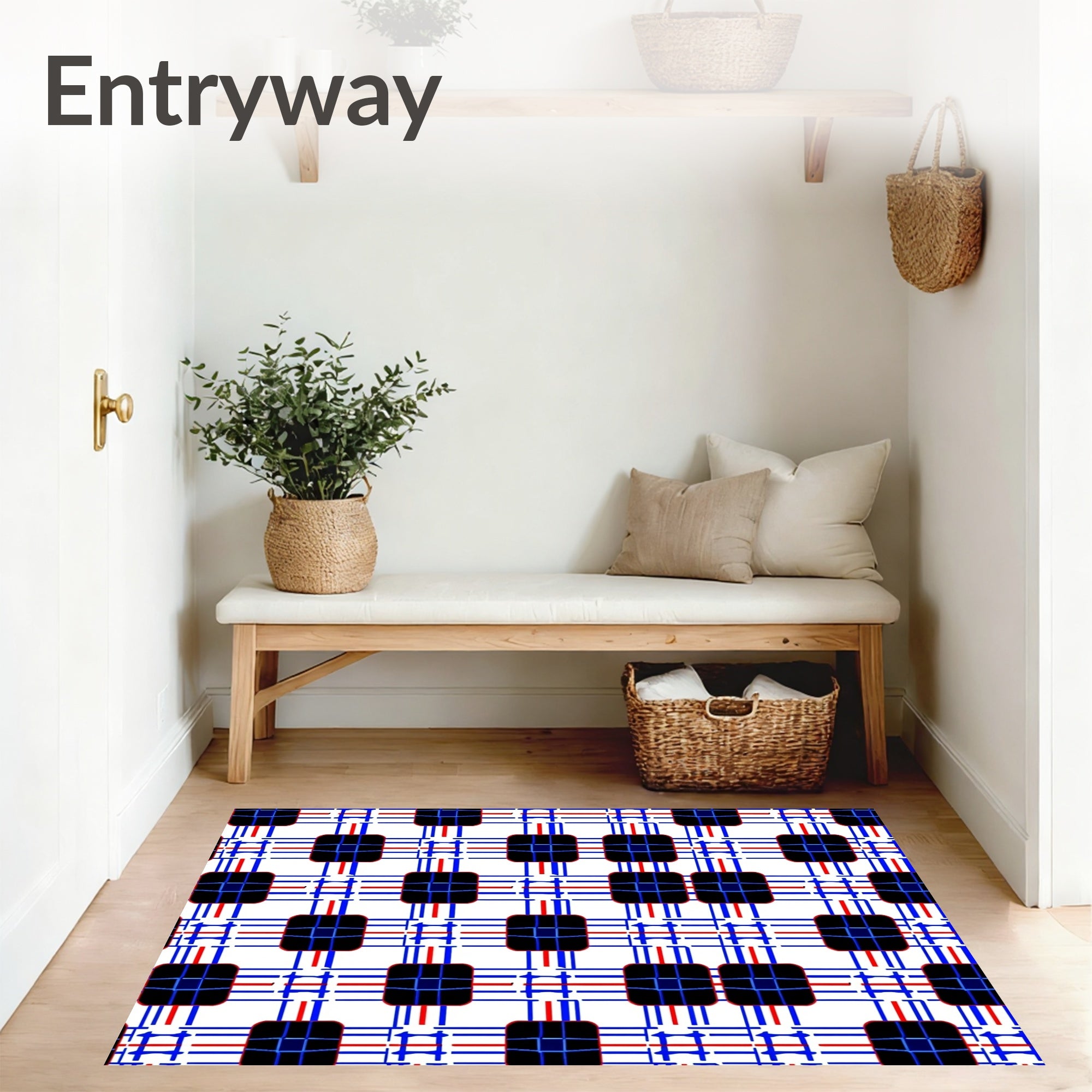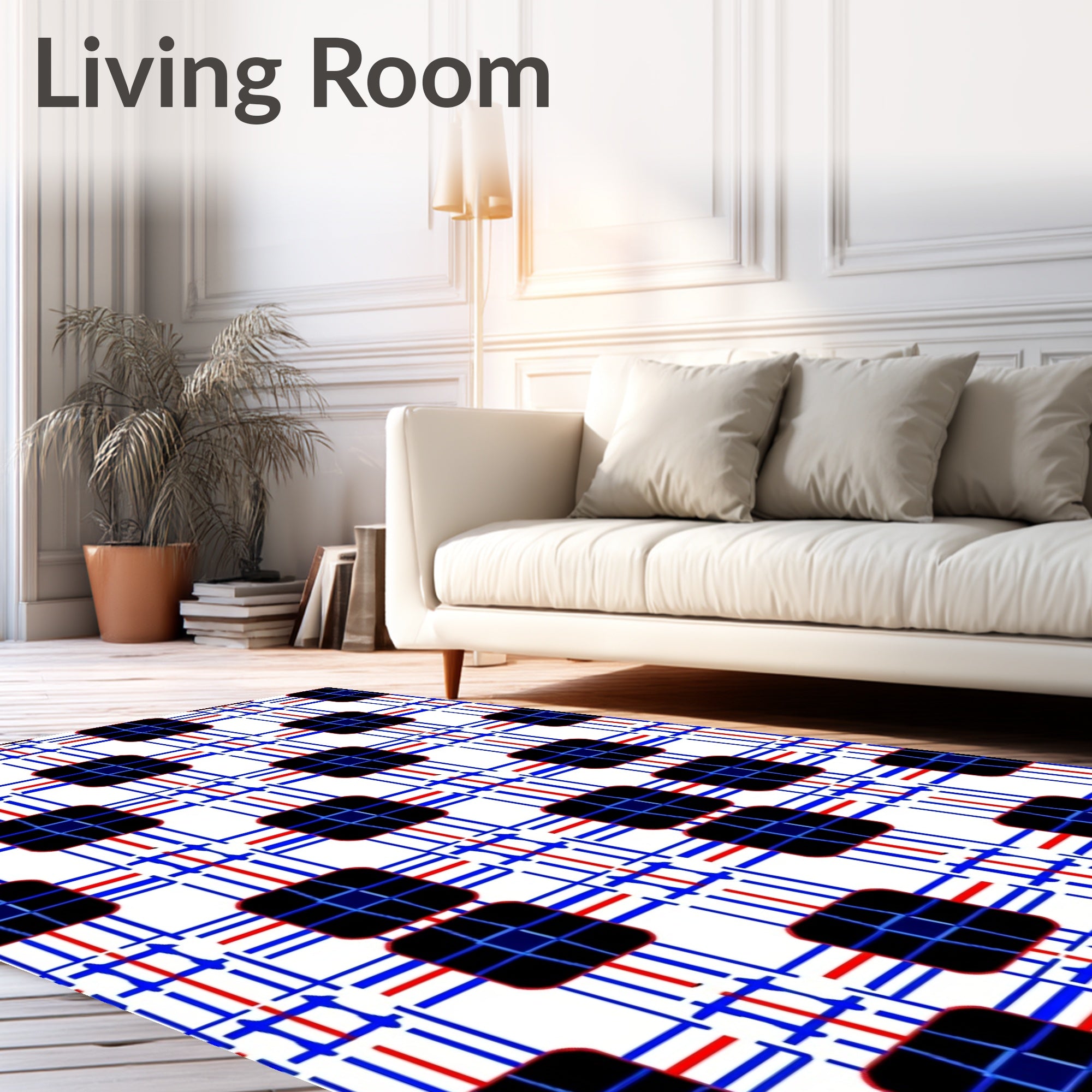Flatwoven High Traffic Area Rug, Retro Checkerboard Highland Tartan Cottage Accessory, Non Slip, Stain Resistant, Washable Area Rugs for Living Room, Bedroom (Black) Overview:
