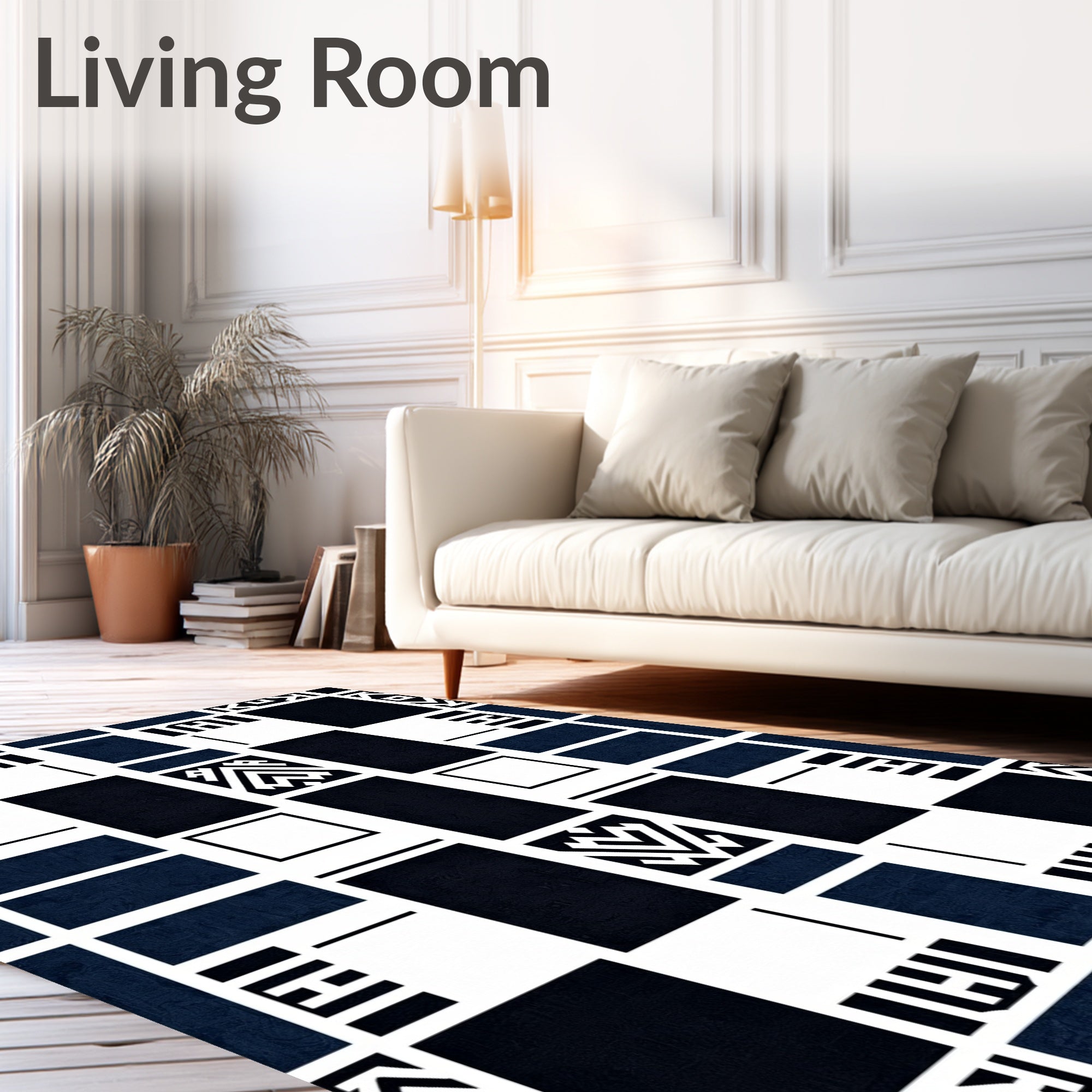 Flatwoven High Traffic Area Rug, Retro Minimalist Chessboard with Clean Interlocking Lines, Non Slip, Stain Resistant, Washable Area Rugs for Living Room, Bedroom (Black) Overview: