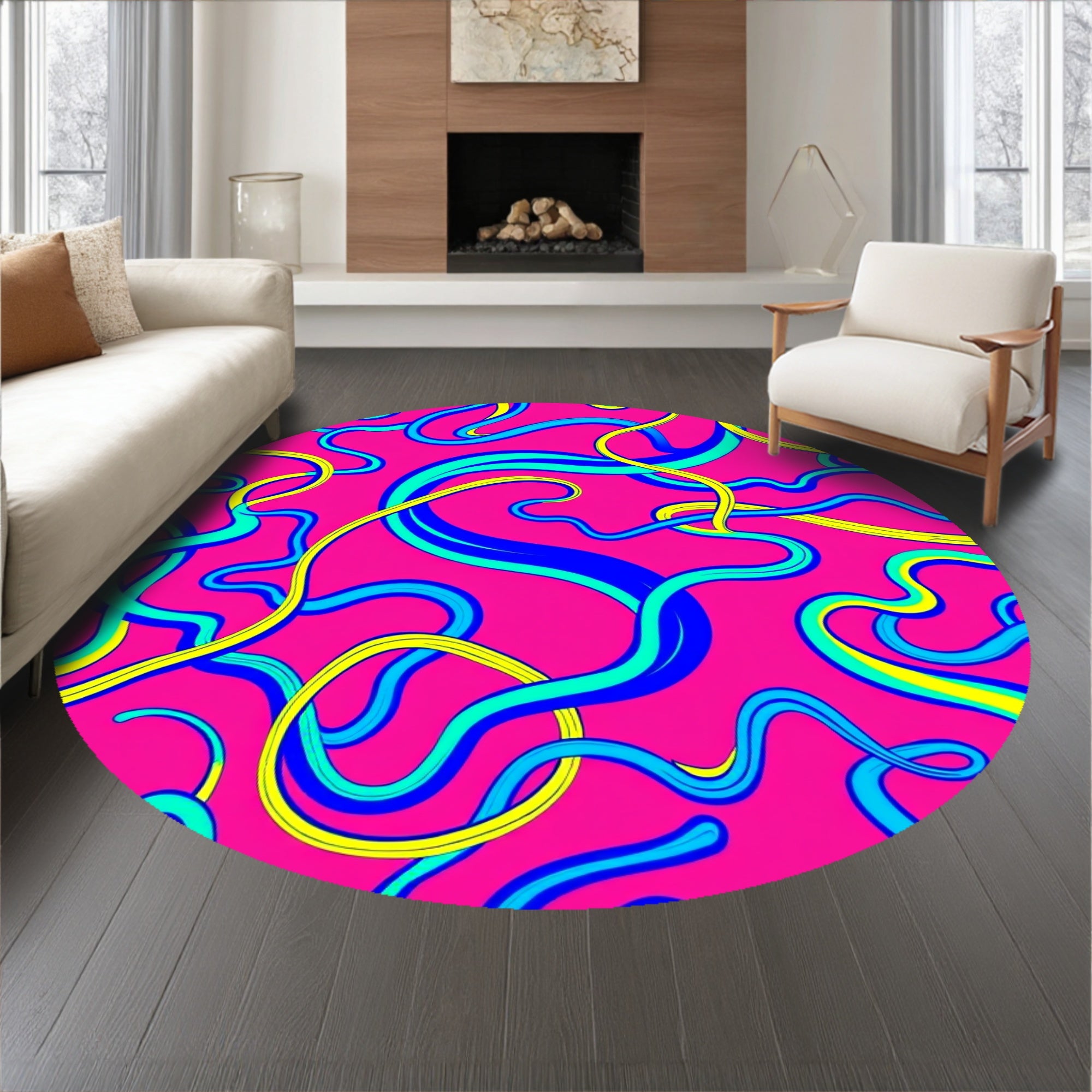 Flatwoven High Traffic Area Rug, Ribbon Flow with Twisting Interlocking Bands in Multicolor, Non Slip, Stain Resistant, Washable Area Rugs for Living Room, Bedroom (Pink) Overview: