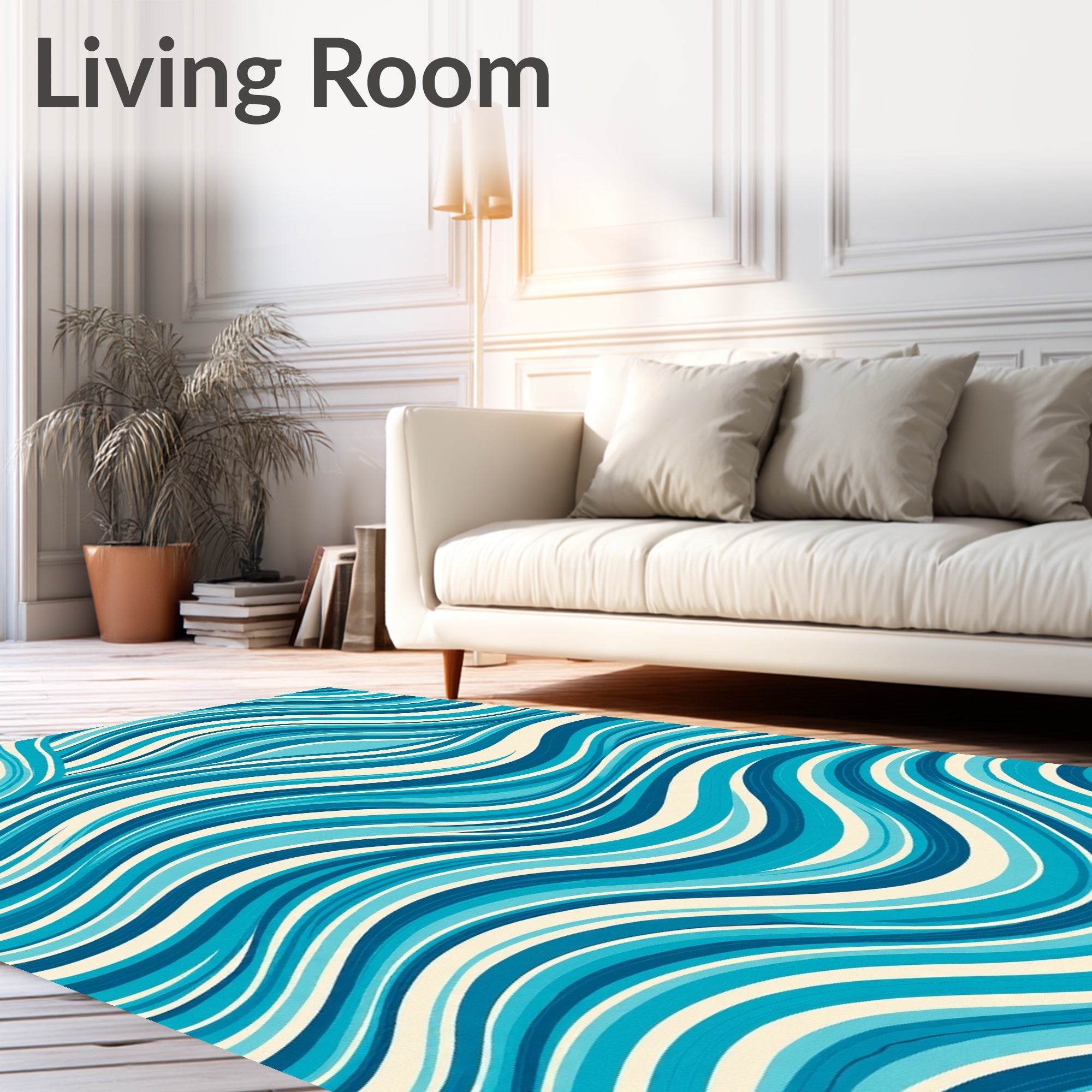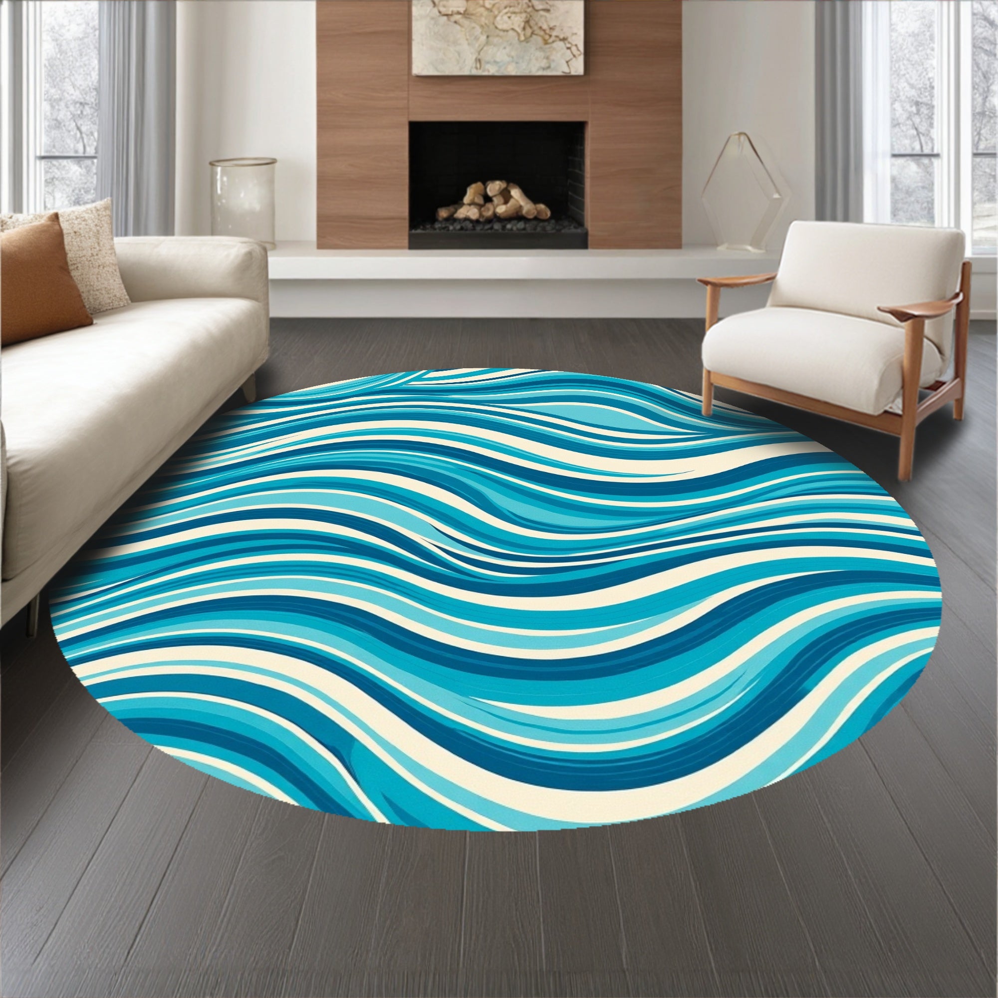 Flatwoven High Traffic Area Rug, Rippling Ocean Wave Tranquil Accent, Non Slip, Stain Resistant, Washable Area Rugs for Living Room, Bedroom (Blue) Overview: