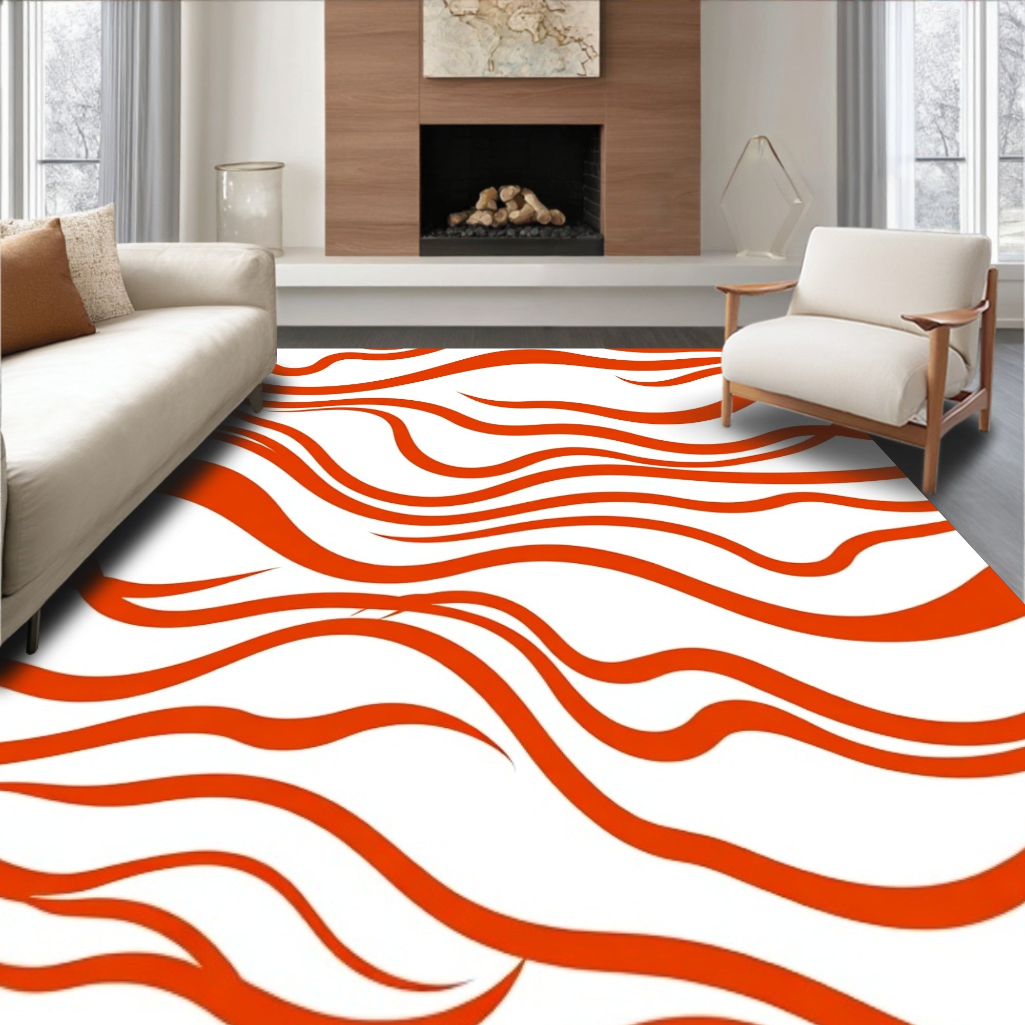 Flatwoven High Traffic Area Rug, Rippling Water Effect Contemporary Art Tapestry with Dynamic Movement, Non Slip, Stain Resistant, Washable Area Rugs for Living Room, Bedroom (Orange) Overview: