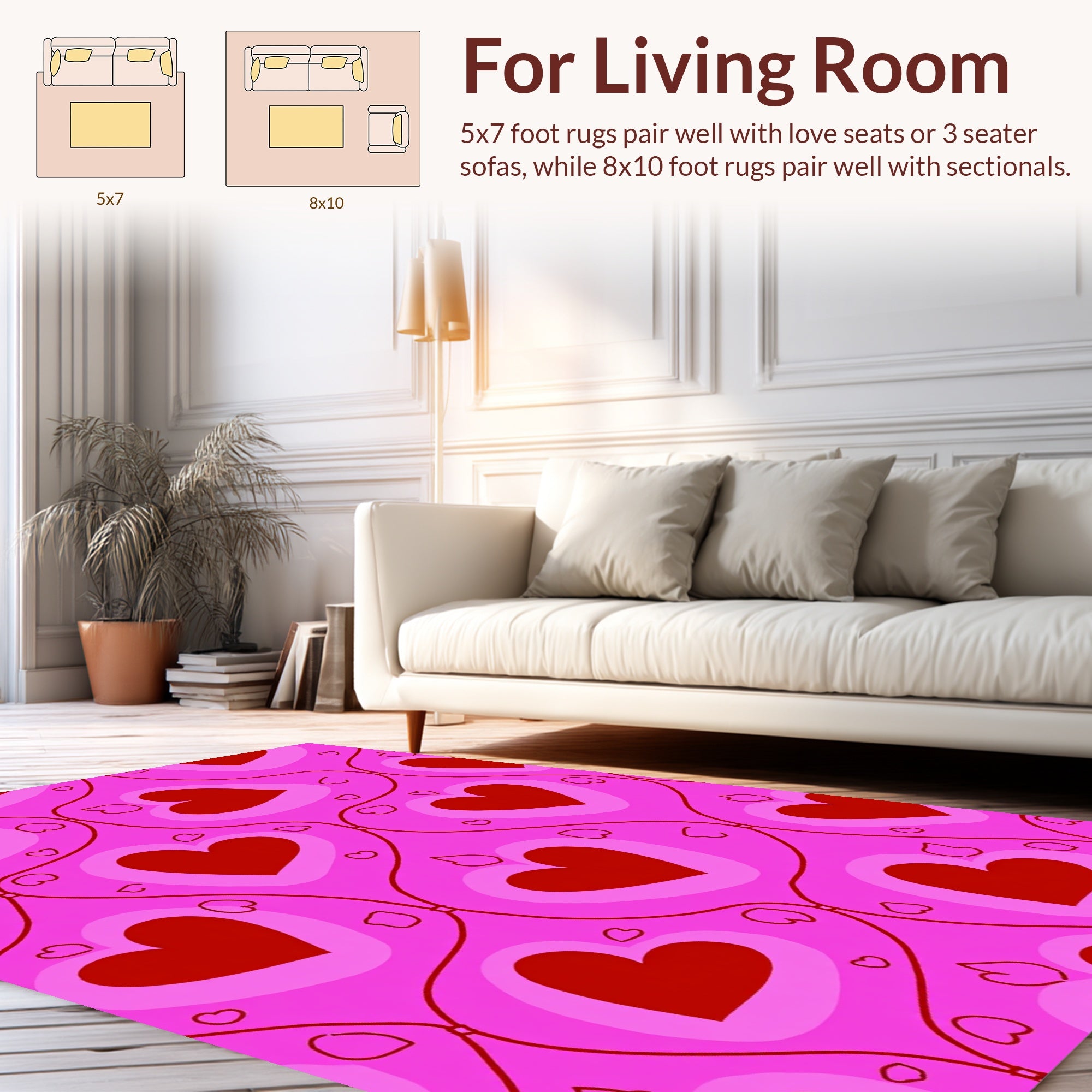 Flatwoven High Traffic Area Rug, Romantic Entrance Welcome Duo Love Celebration, Non Slip, Stain Resistant, Washable Area Rugs for Living Room, Bedroom (Pink) Overview: