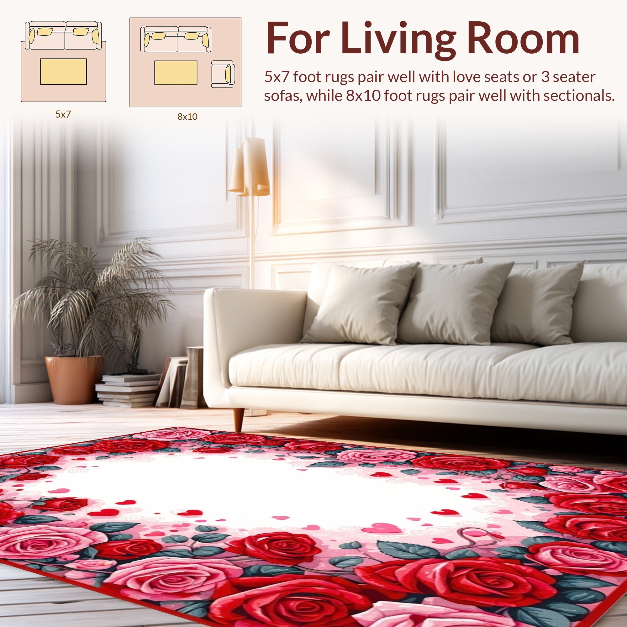 Flatwoven High Traffic Area Rug, Rose Valentine Day, Non Slip, Stain Resistant, Washable Area Rugs for Living Room, Bedroom (Red) Overview: