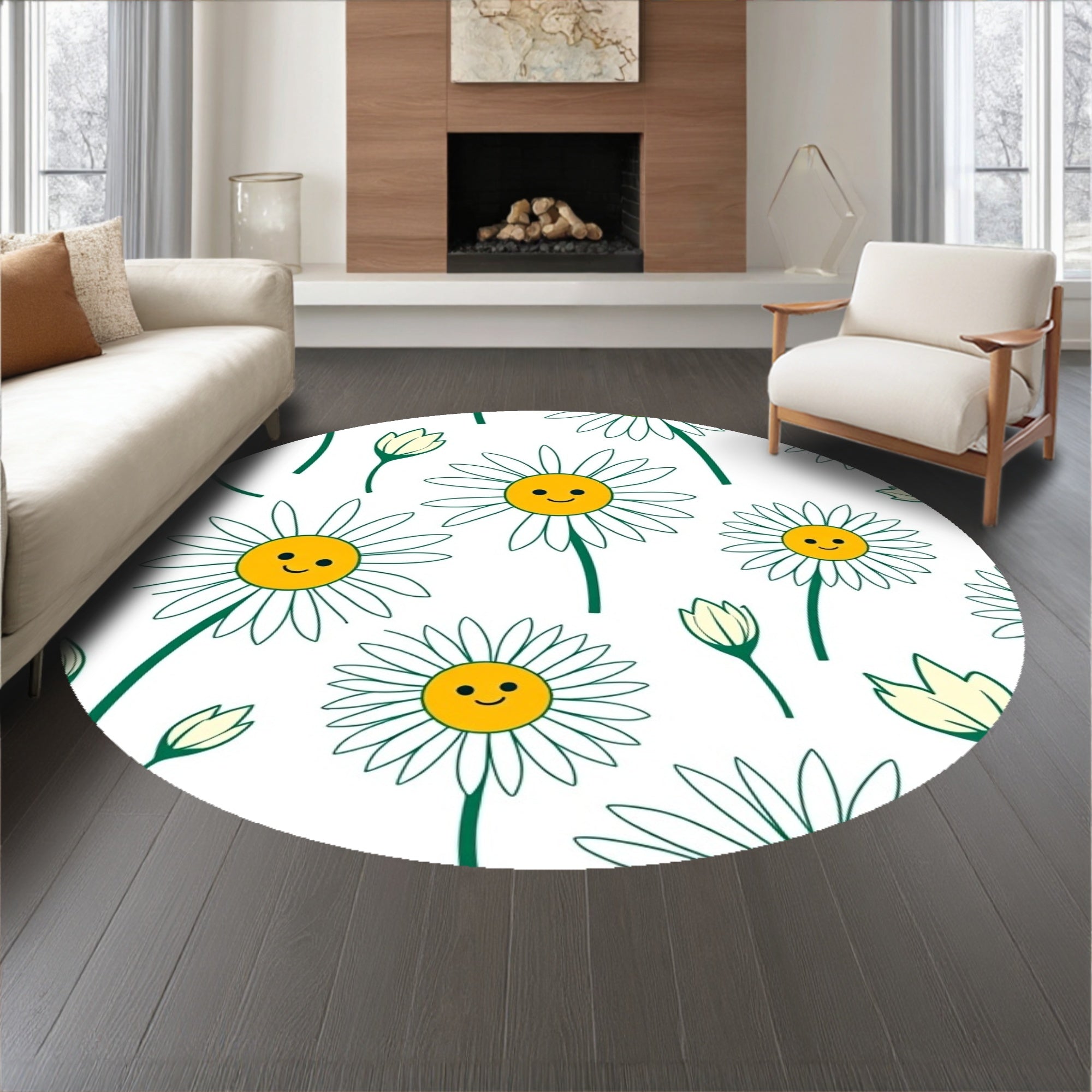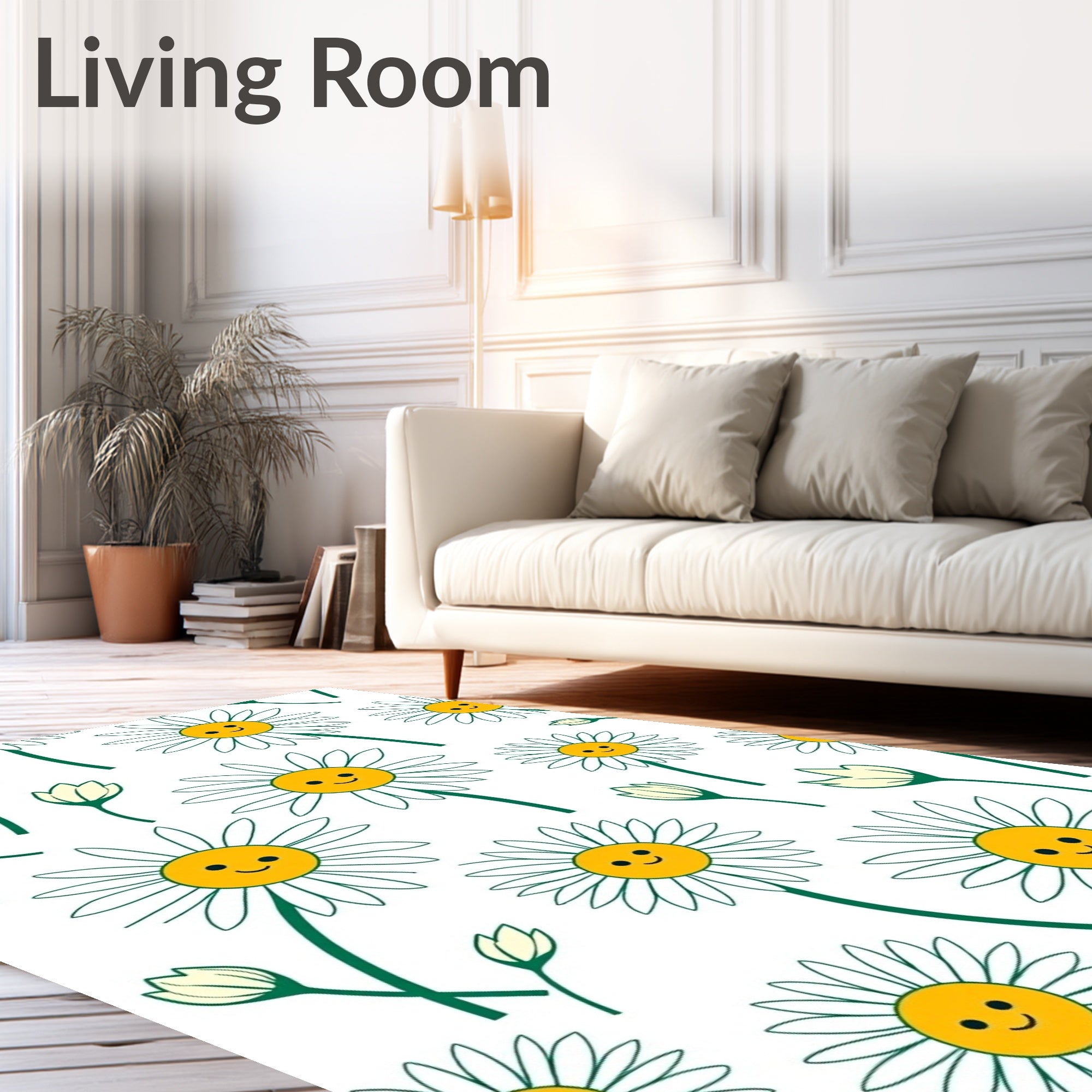 Brighten your home with the Happy Daisy Pattern White Rug, a charming addition that brings instant cheer to any nursery, playroom, or creative living room. This whimsical Area Rug features a playful array of sun-drenched yellow centers and crisp white petals, all finished with adorable smiling faces that radiate positivity. Designed for the rhythms of a busy household, it is exceptionally Durable and Machine Washable, ensuring the vibrant teal stems and clean white backdrop stay fresh through every spill and playdate. Certified with the OEKO-TEX Standard 100, this rug provides a safe, low-maintenance foundation that balances whimsical modern style with essential peace of mind for your family.
