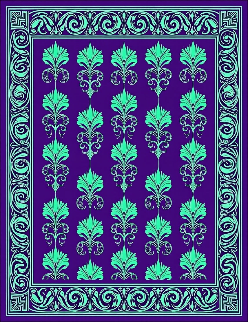 Flatwoven High Traffic Area Rug, Spiral Damask Vintage Inspired Nouveau, Non Slip, Stain Resistant, Washable Area Rugs for Living Room, Bedroom (Purple) Overview: