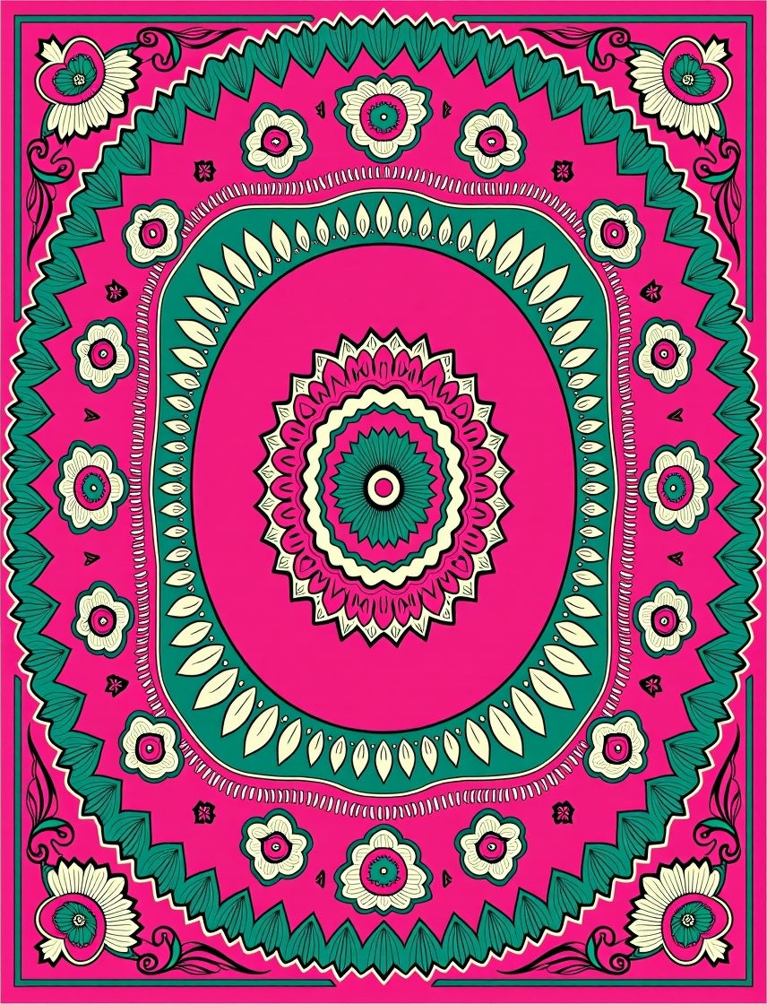 Starburst with Intricate Petal Motifs (Pink)