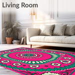 Flatwoven High Traffic Area Rug, Starburst with Intricate Petal Motifs, Non Slip, Stain Resistant, Washable Area Rugs for Living Room, Bedroom (Pink) Overview: