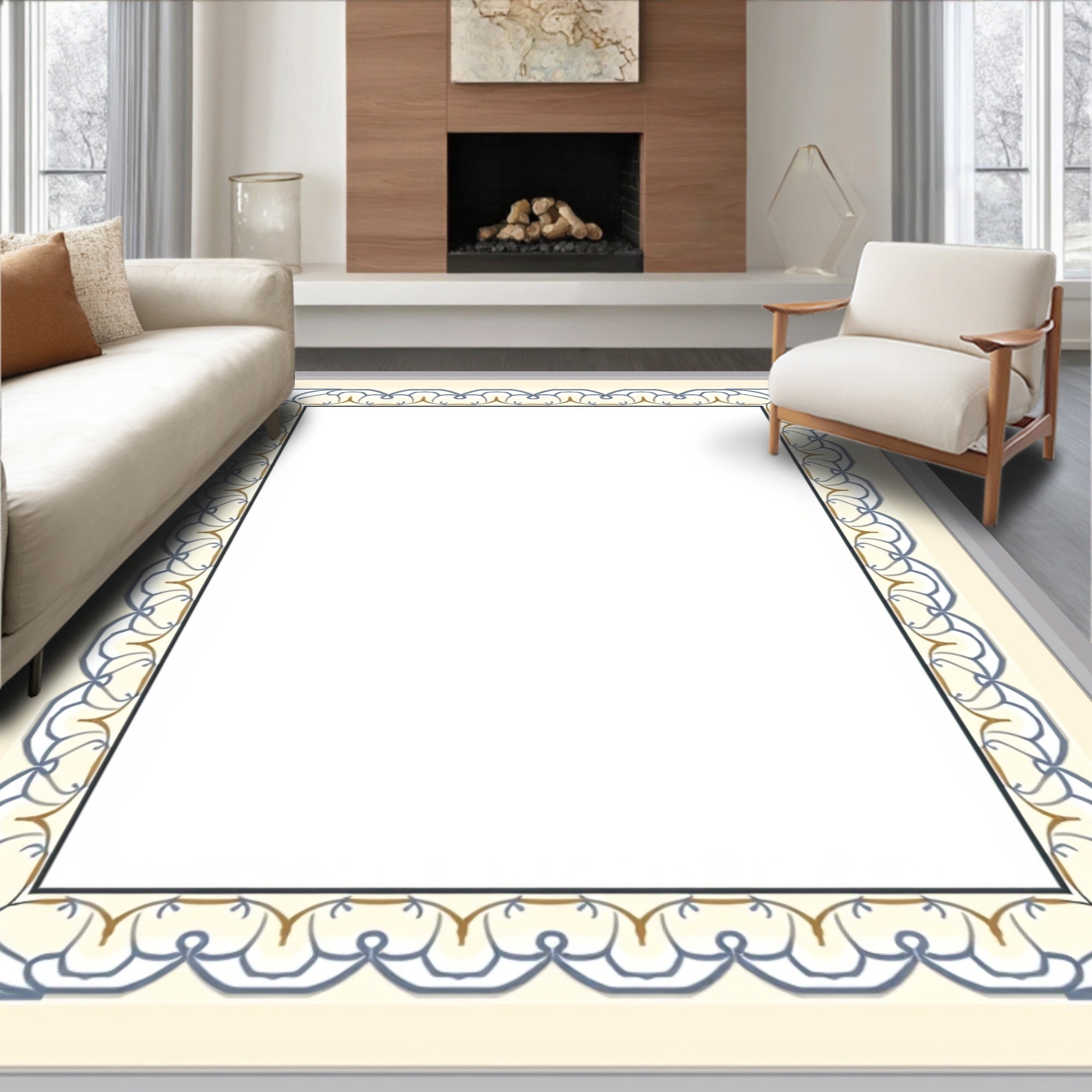 Flatwoven High Traffic Area Rug, Stylish Contemporary Bordered Textile With Luxurious Embellishment, Non Slip, Stain Resistant, Washable Area Rugs for Living Room, Bedroom (Beige) Overview:
