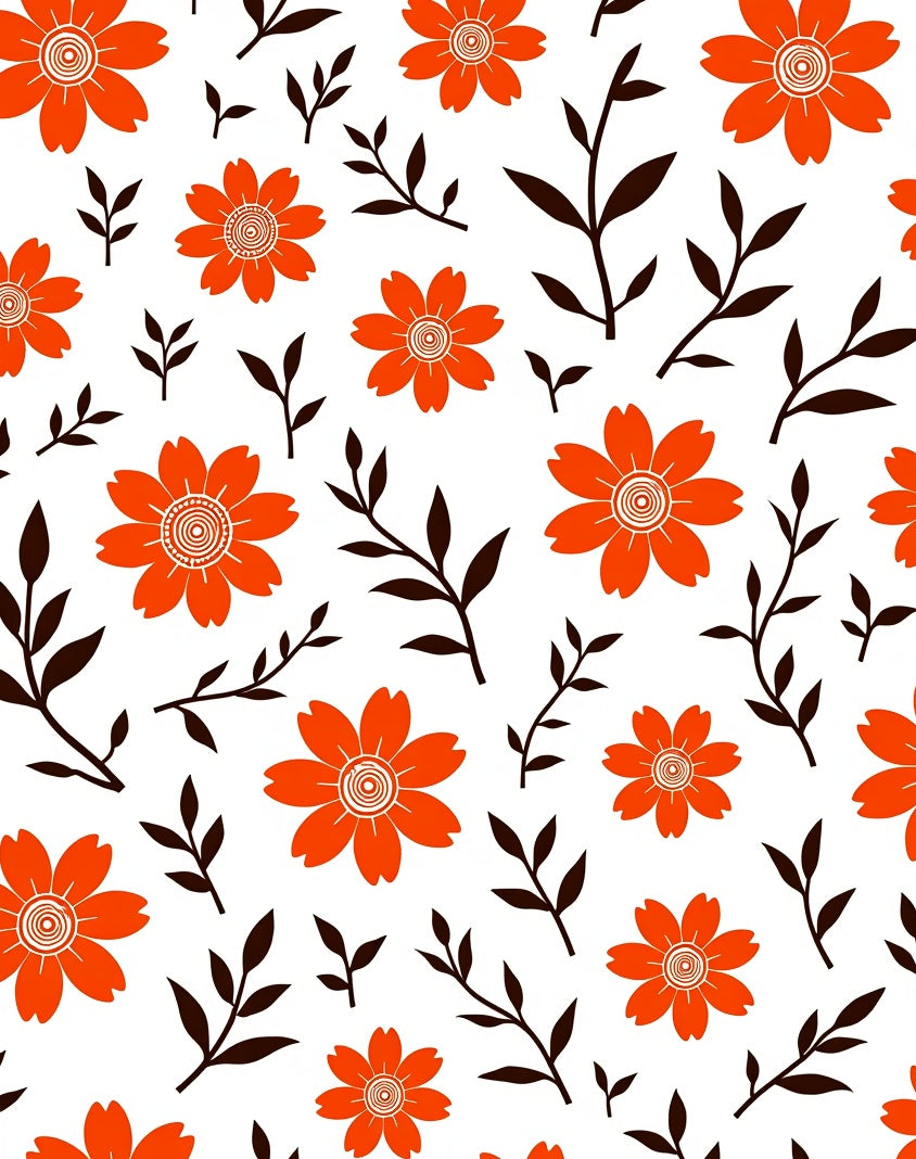Stylized Bloom Cluster With Curvy Vines And Layered Abstract Leaves (Orange)