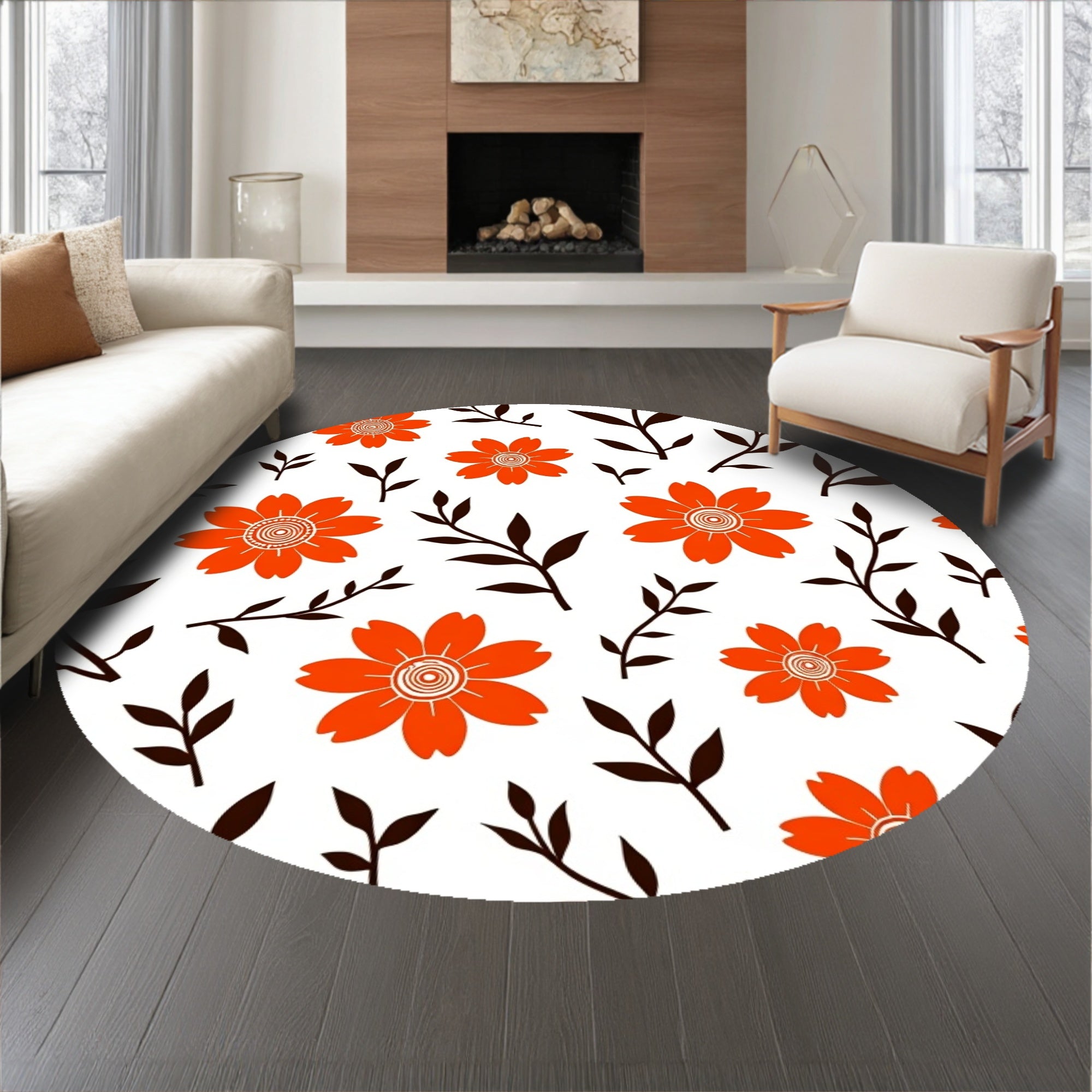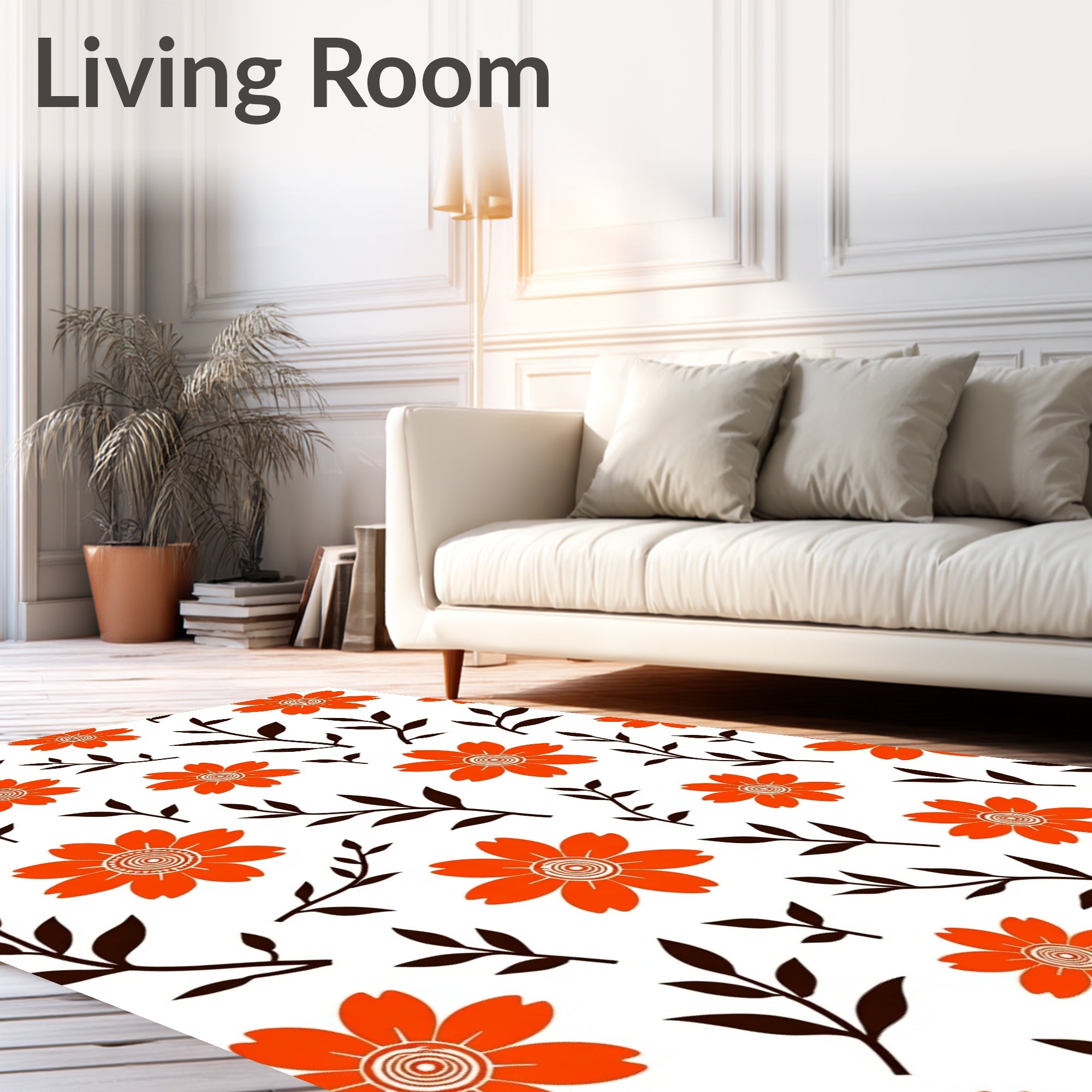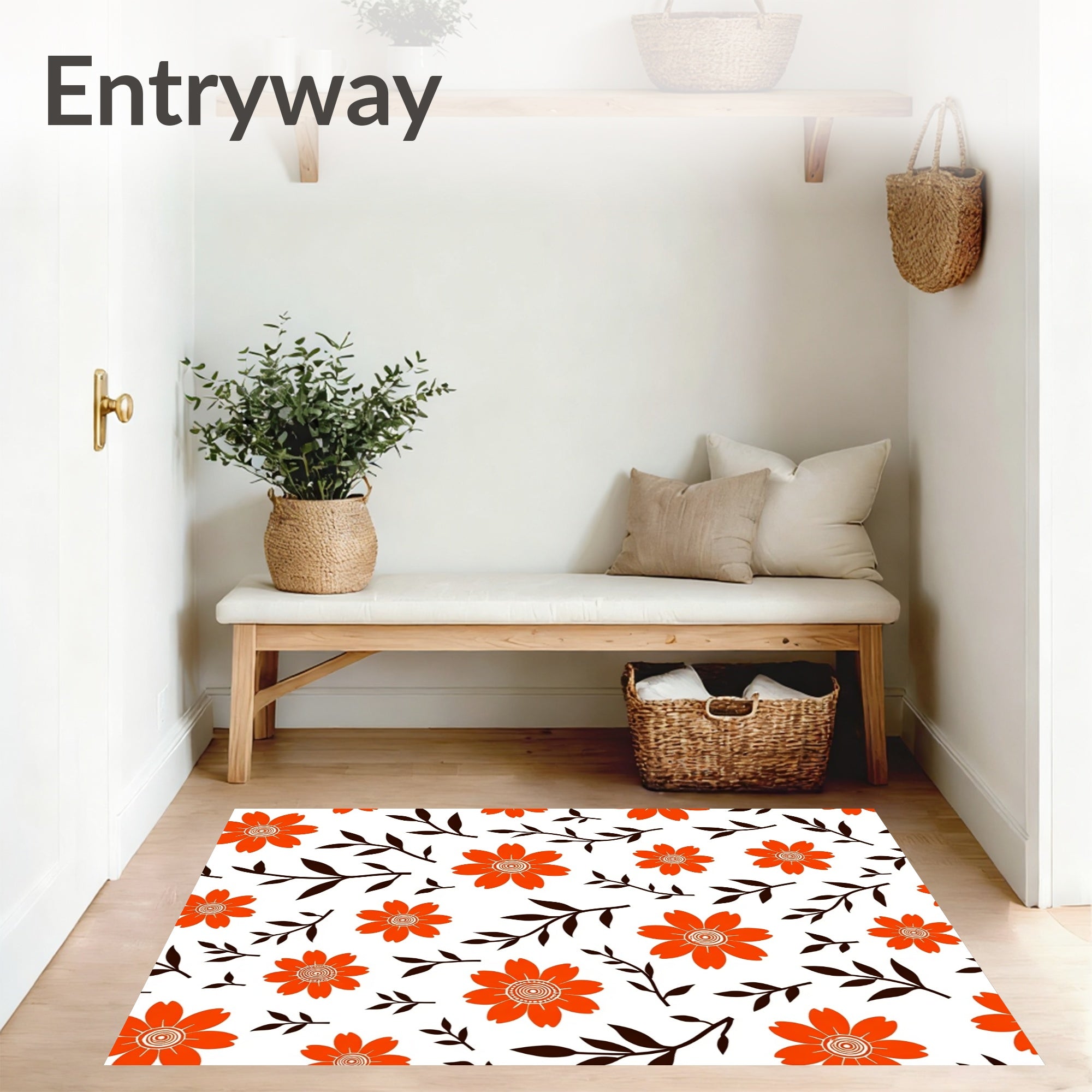 Flatwoven High Traffic Area Rug, Stylized Bloom Cluster With Curvy Vines And Layered Abstract Leaves, Non Slip, Stain Resistant, Washable Area Rugs for Living Room, Bedroom (Orange) Overview: