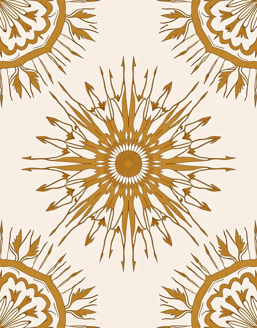 Sunburst Medallion with Radiant Petal Motifs and Artistic Flair (Gold)