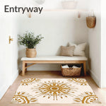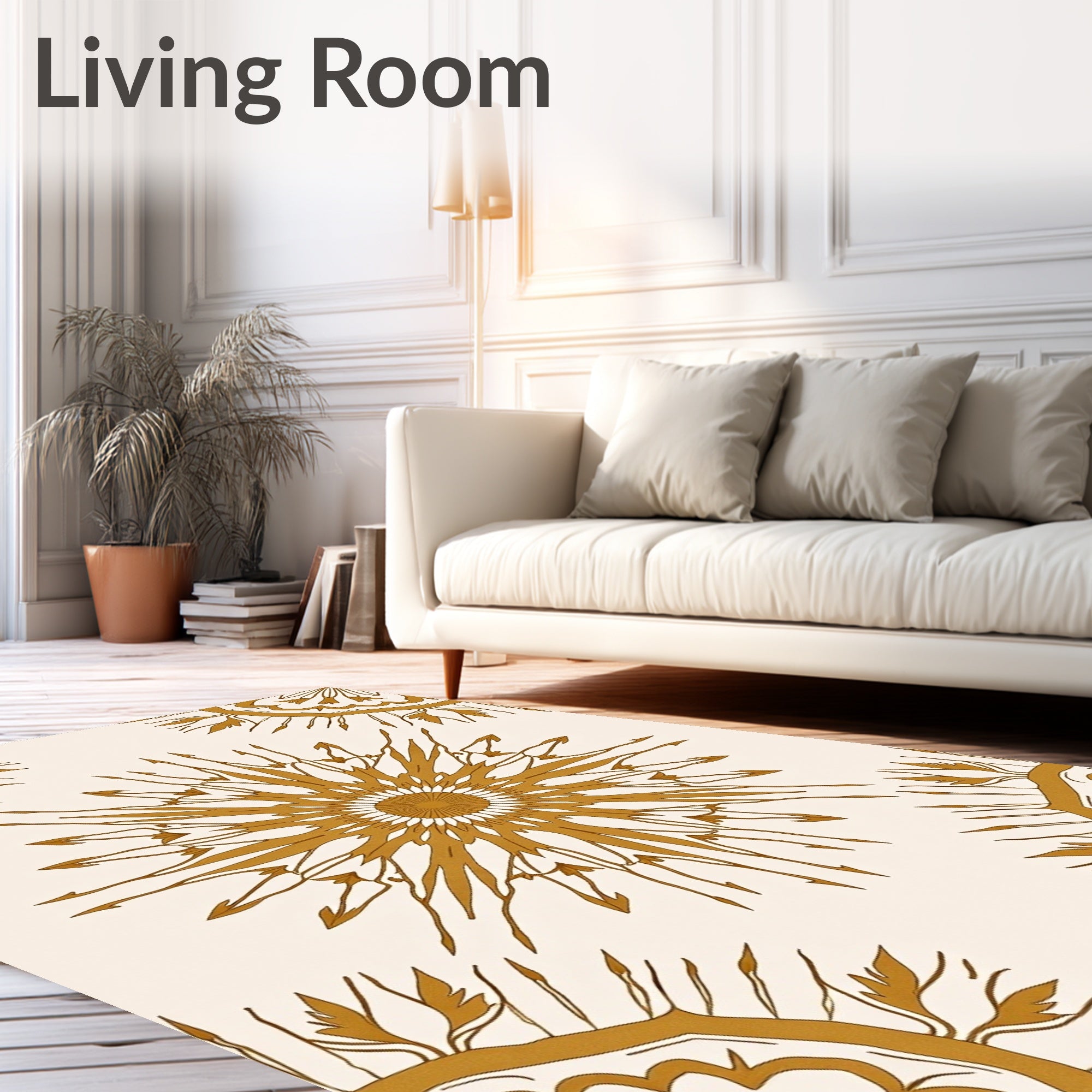 Flatwoven High Traffic Area Rug, Sunburst Medallion with Radiant Petal Motifs and Artistic Flair, Non Slip, Stain Resistant, Washable Area Rugs for Living Room, Bedroom (Gold) Overview:
