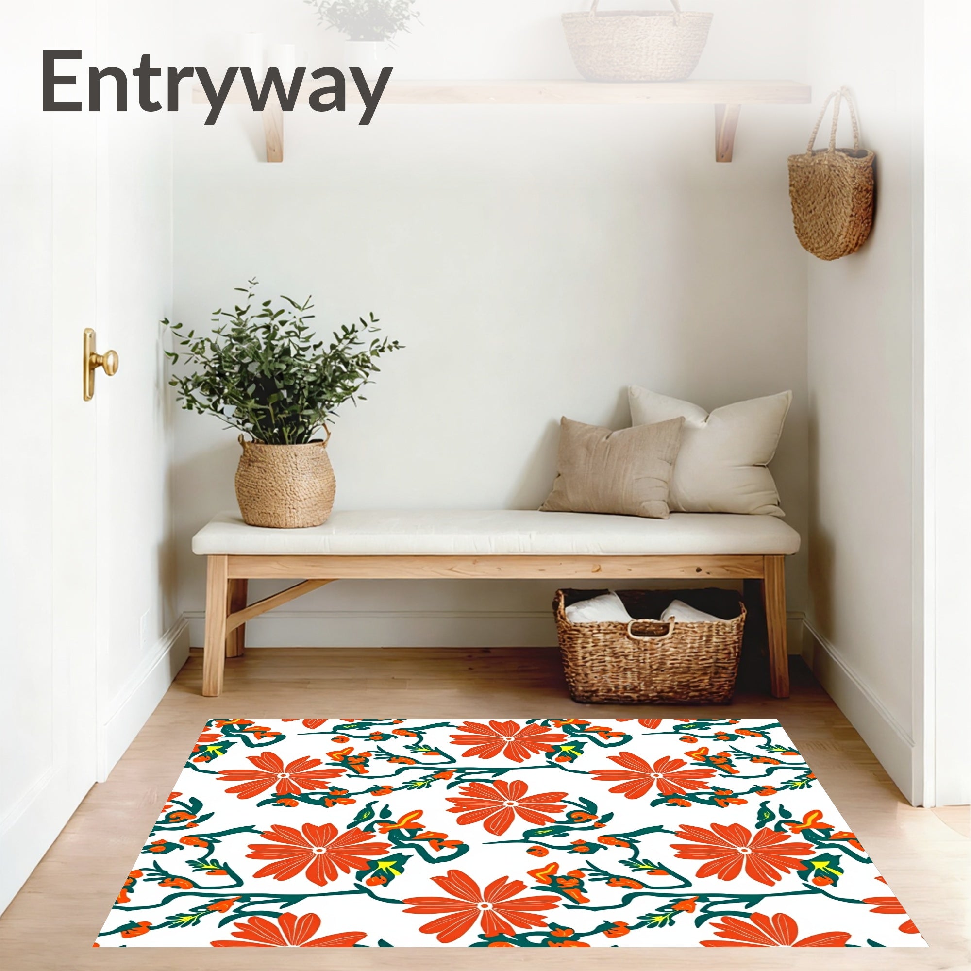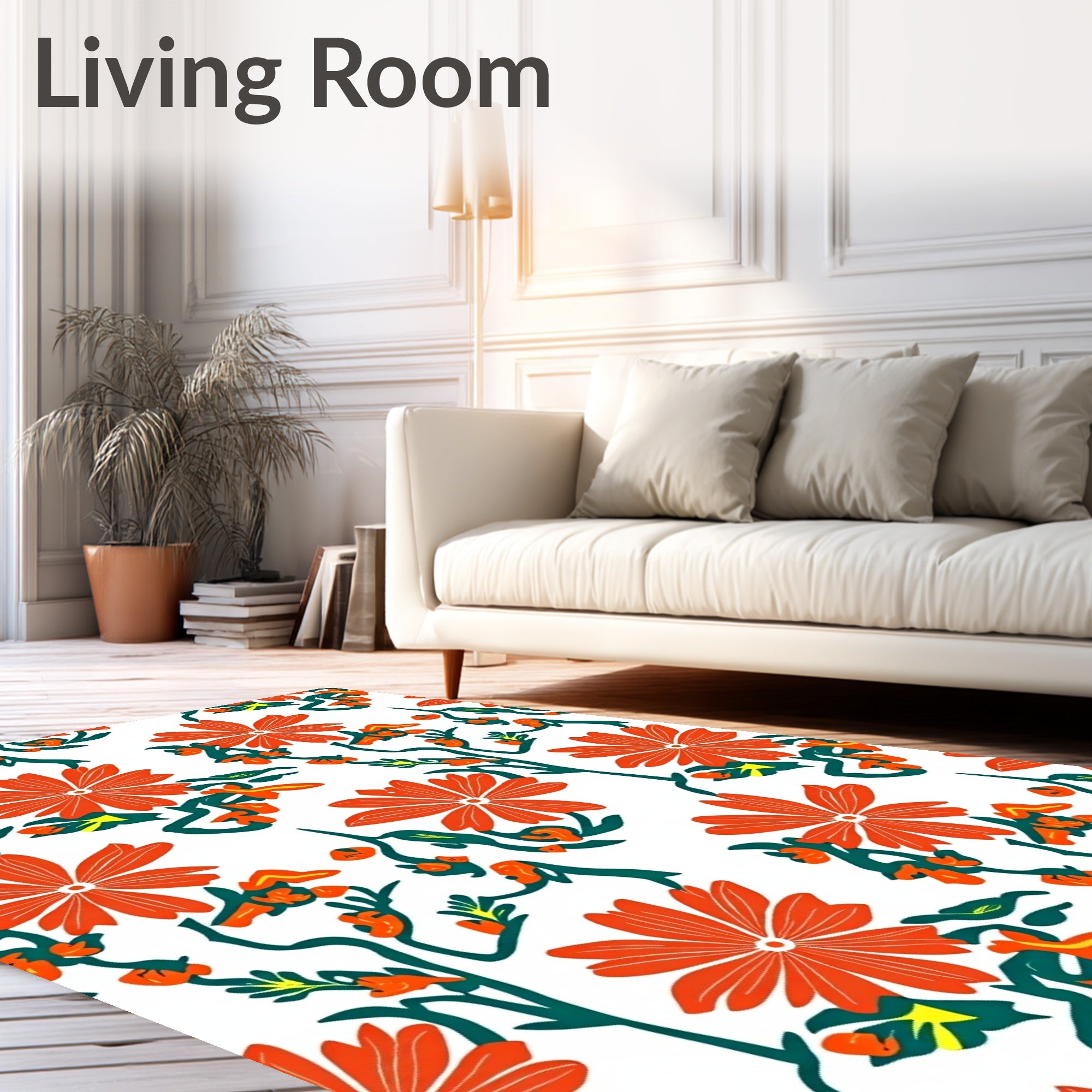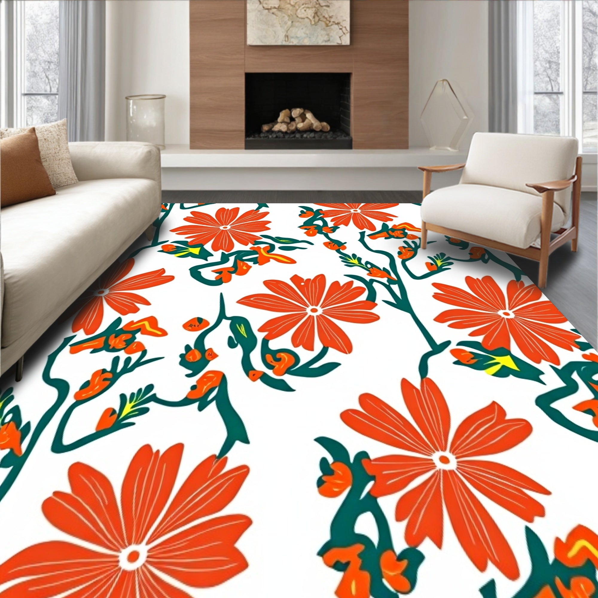 Flatwoven High Traffic Area Rug, Sunburst Petal Cascade with Ornate Foliage and Modern Boho Detailing, Non Slip, Stain Resistant, Washable Area Rugs for Living Room, Bedroom (Orange) Overview: