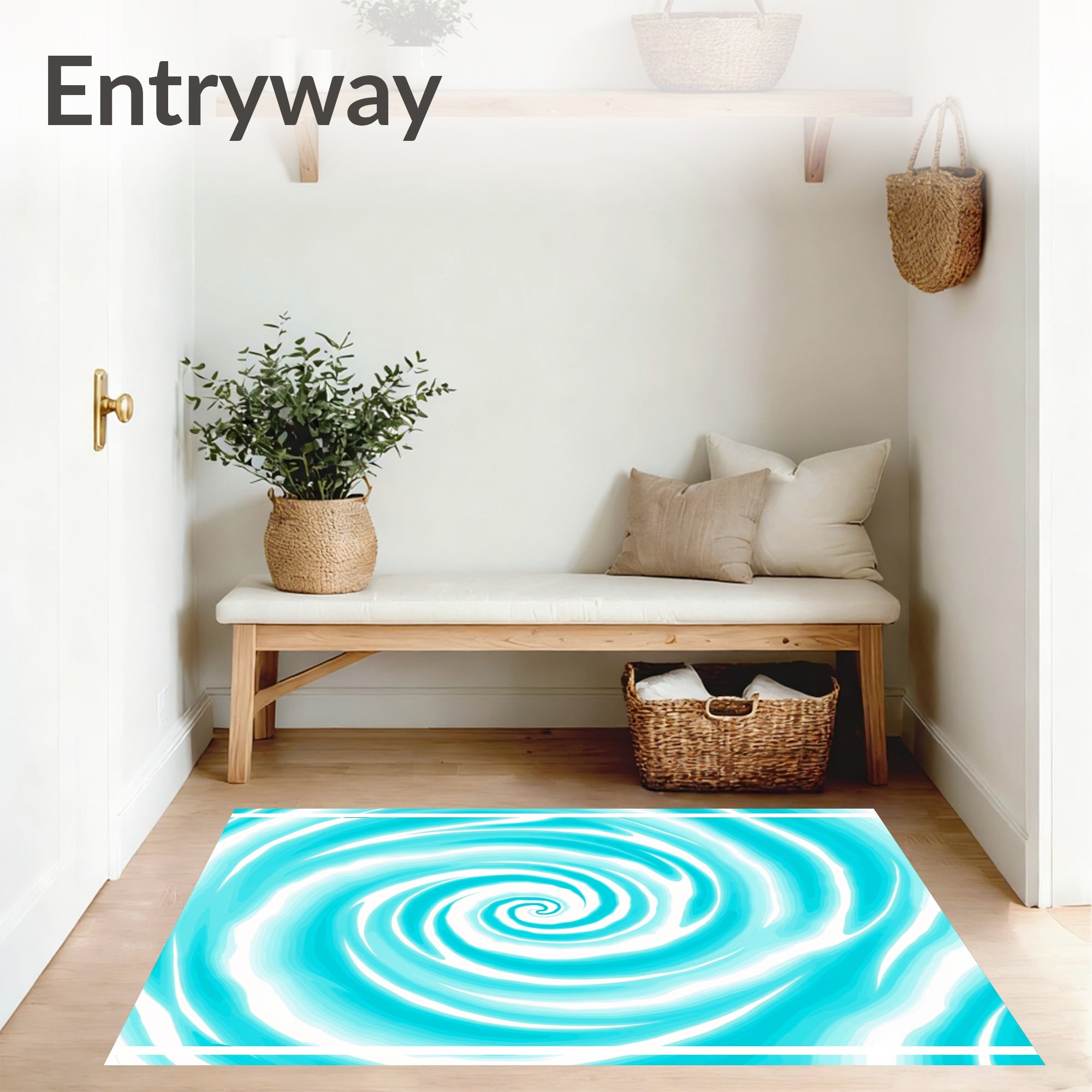 Flatwoven High Traffic Area Rug, Swirling Cloud Vortex Design with Abstract Spiral, Non Slip, Stain Resistant, Washable Area Rugs for Living Room, Bedroom (Blue) Overview: