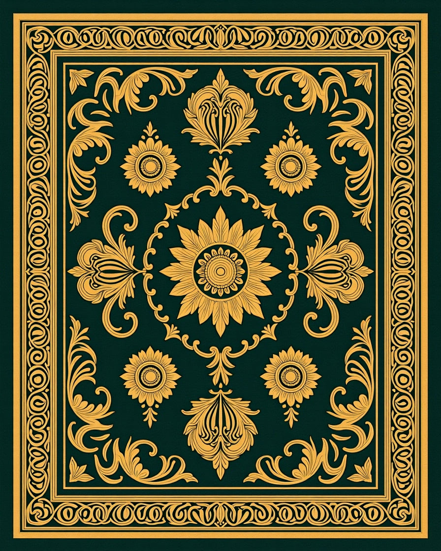 Symmetrical Floral Medallion with Interlocking Scrollwork Details (Gold)