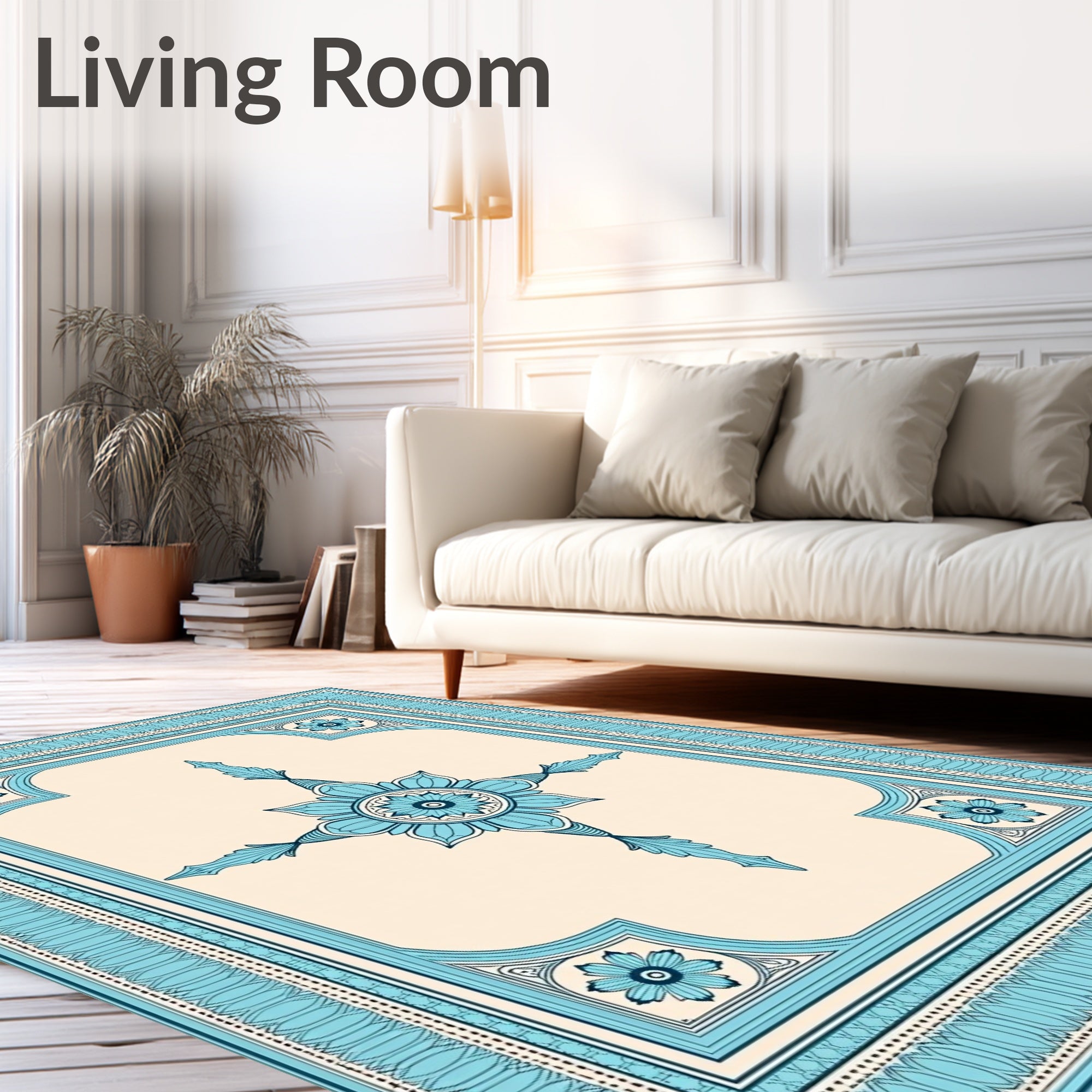 Tile Inspired Boho Floor Covering (Blue)