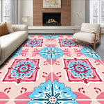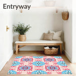 Flatwoven High Traffic Area Rug, Tile Mosaic Exotic Ornate Medallion Artisan, Non Slip, Stain Resistant, Washable Area Rugs for Living Room, Bedroom (Pink) Overview: