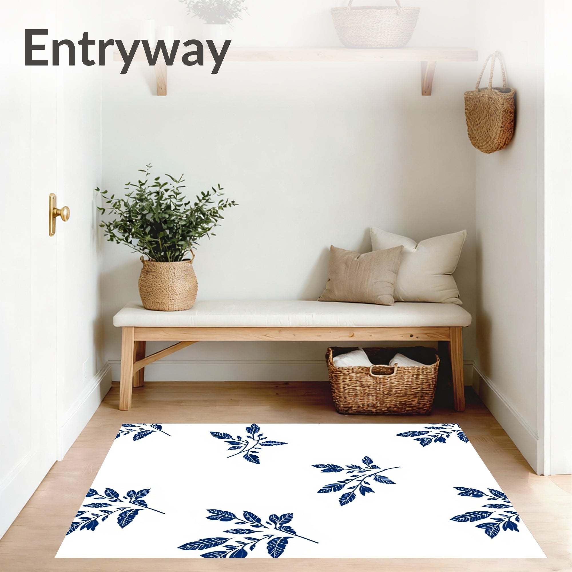 Flatwoven High Traffic Area Rug, Timeless Floral Botanical Embellished Versatile Practical, Non Slip, Stain Resistant, Washable Area Rugs for Living Room, Bedroom (Blue) Overview: