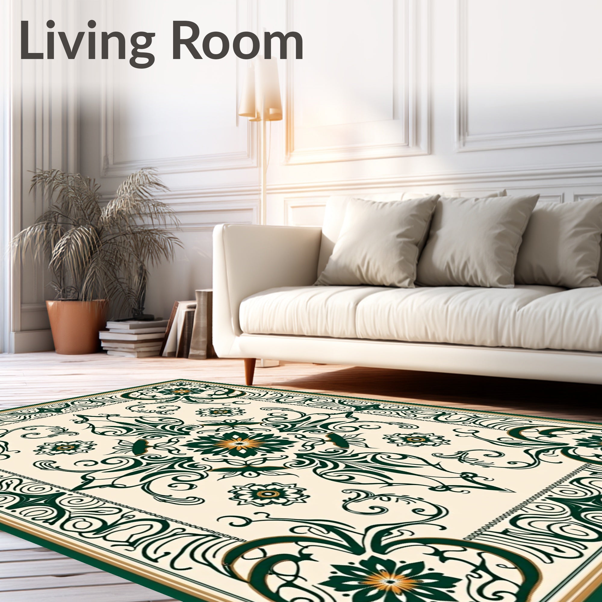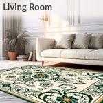Flatwoven High Traffic Area Rug, Traditional Damask Scroll with Ornate Victorian, Non Slip, Stain Resistant, Washable Area Rugs for Living Room, Bedroom (Beige) Overview: