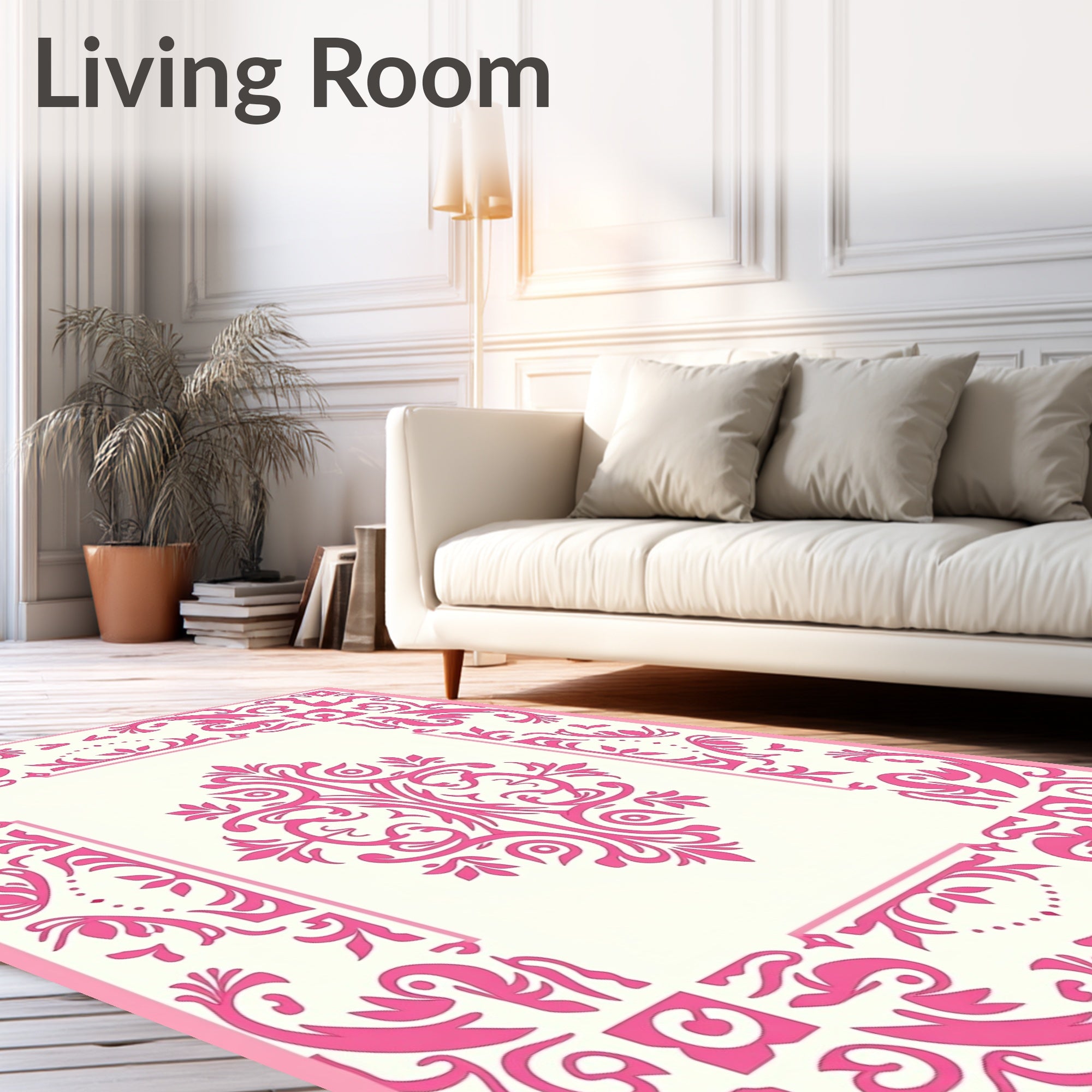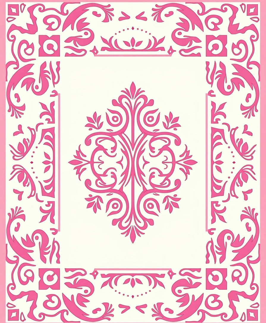 Traditional Damask Scrollwork Lightweight Anti Skid Design (Pink)