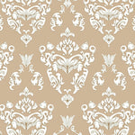 Traditional Damask with Ornamental Scrollwork Accents (Beige)